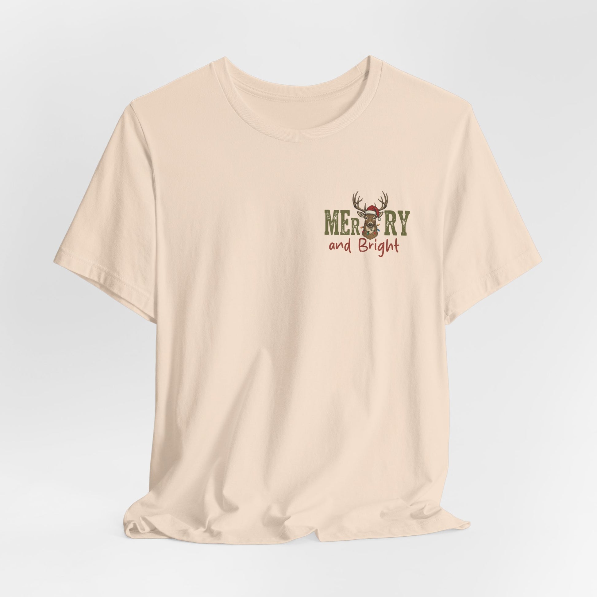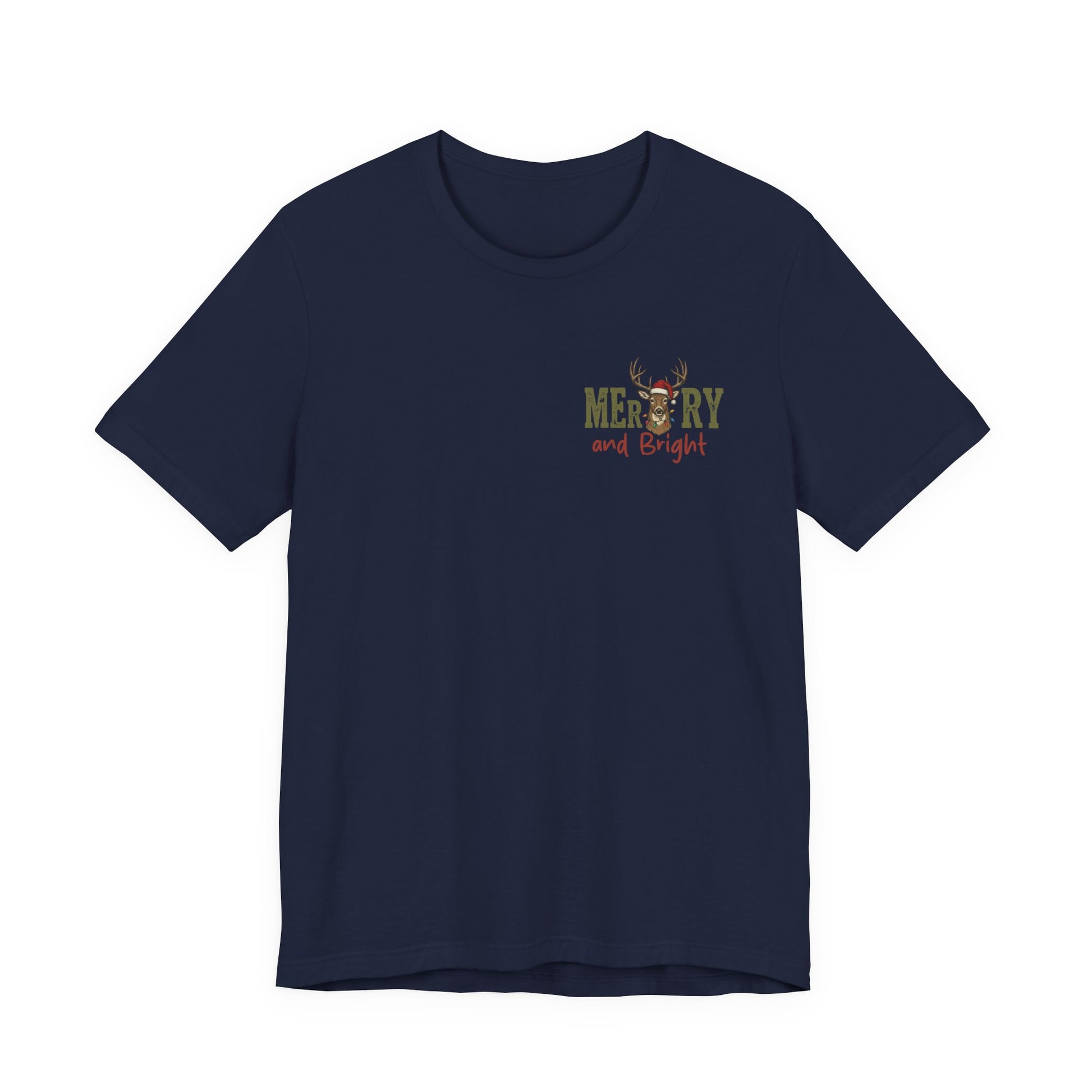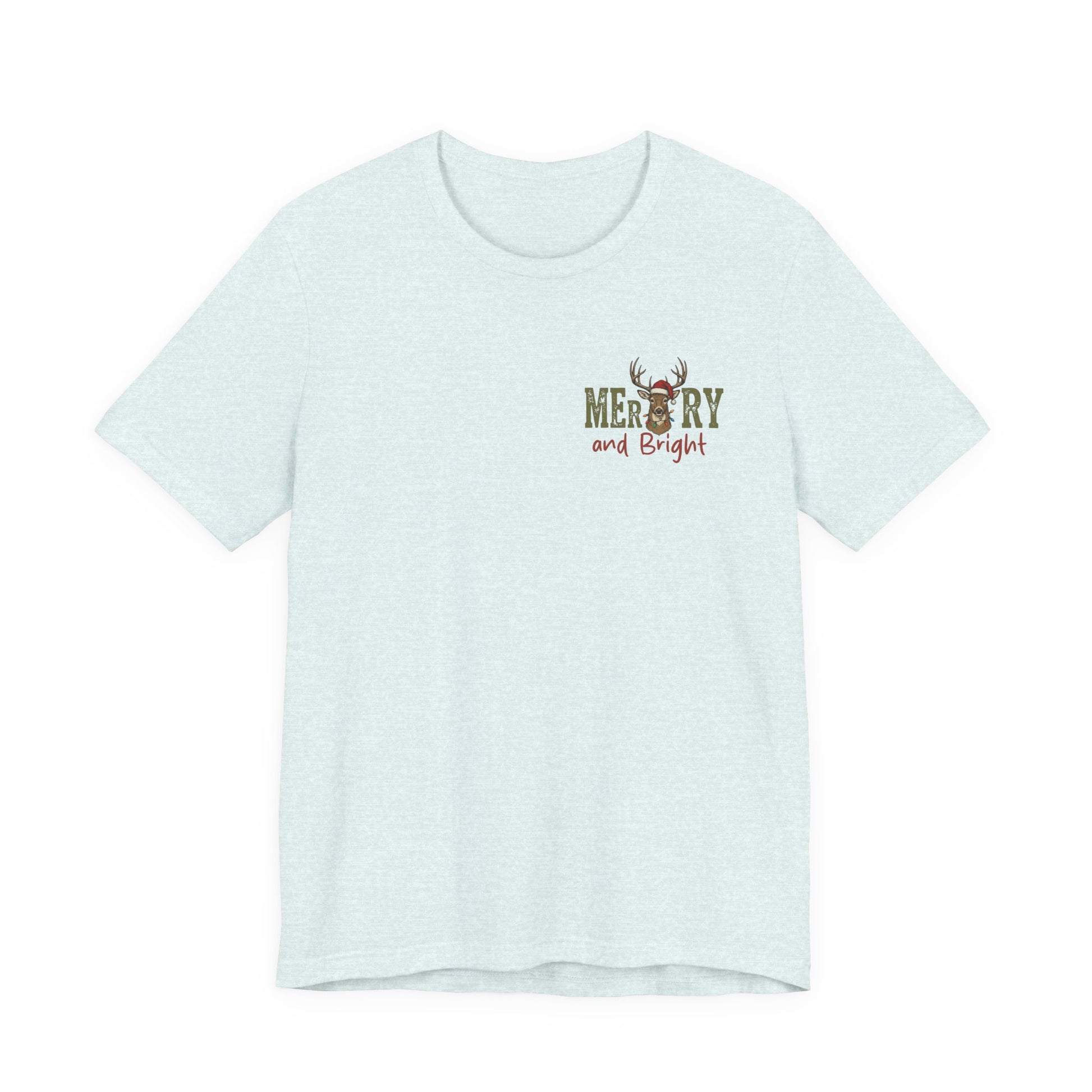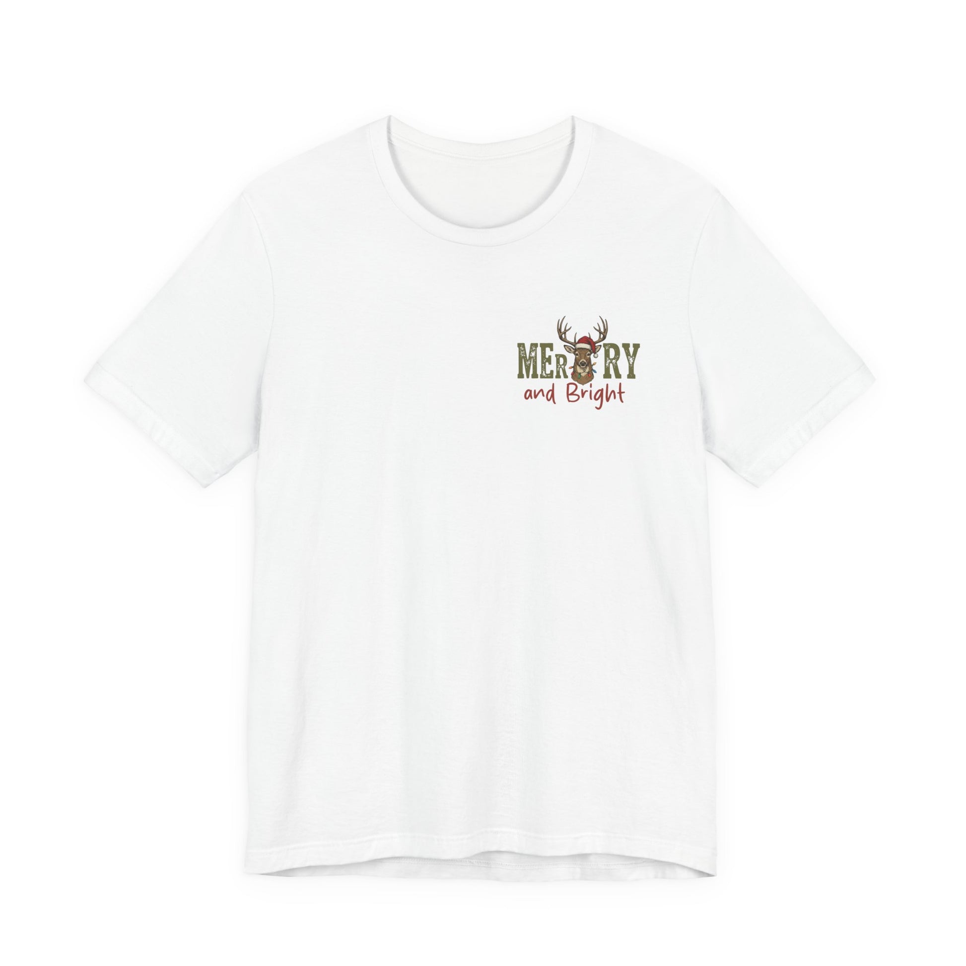 Christmas T‑Shirt — Merry and Bright Camouflage Buck Tee