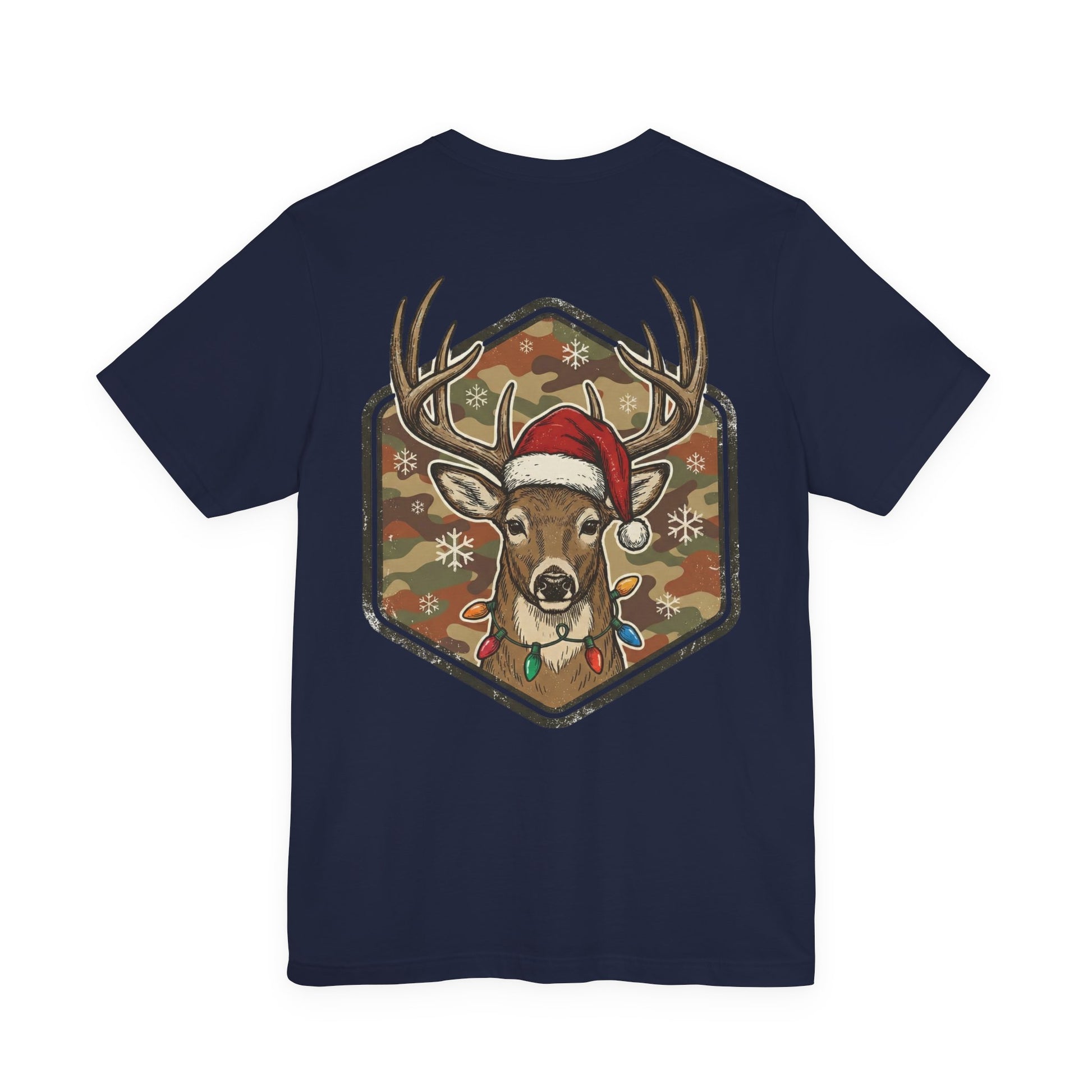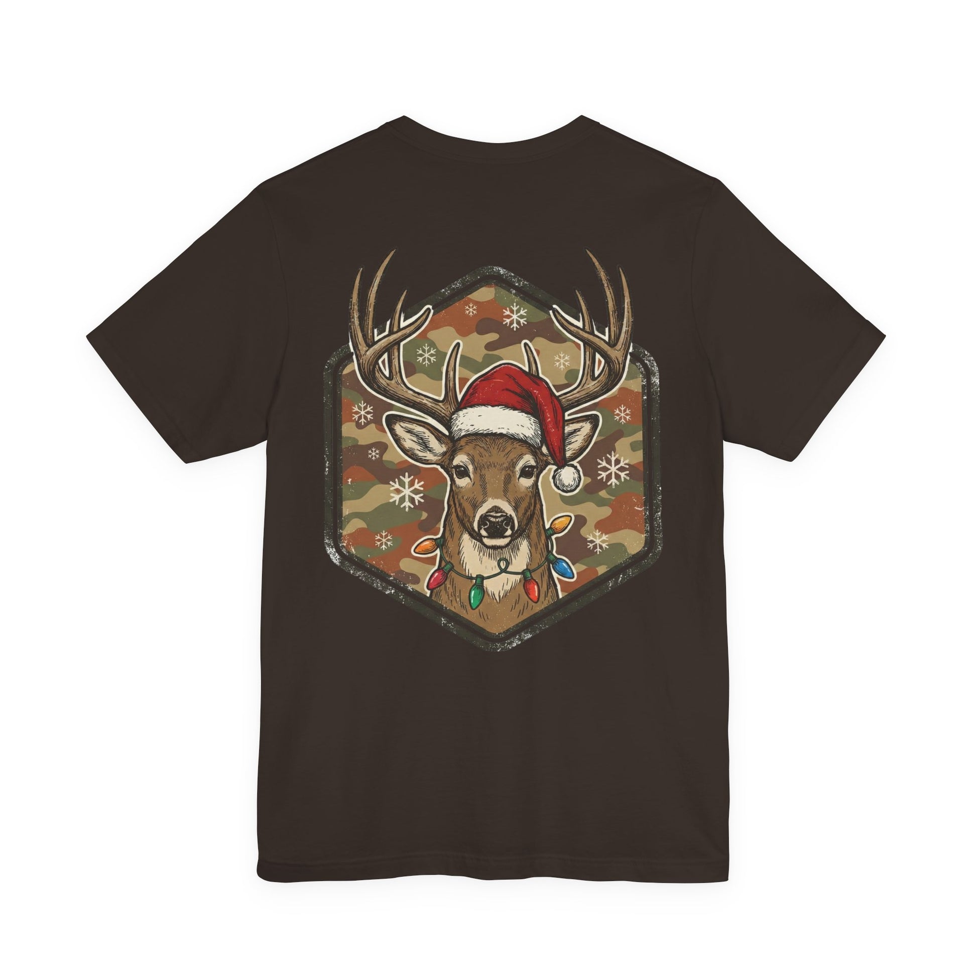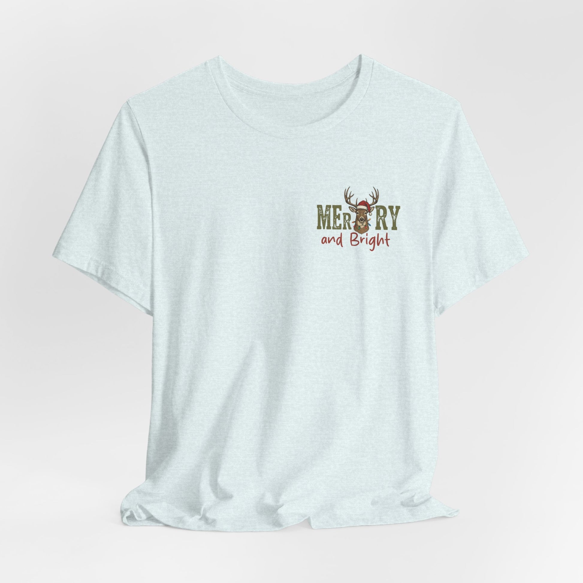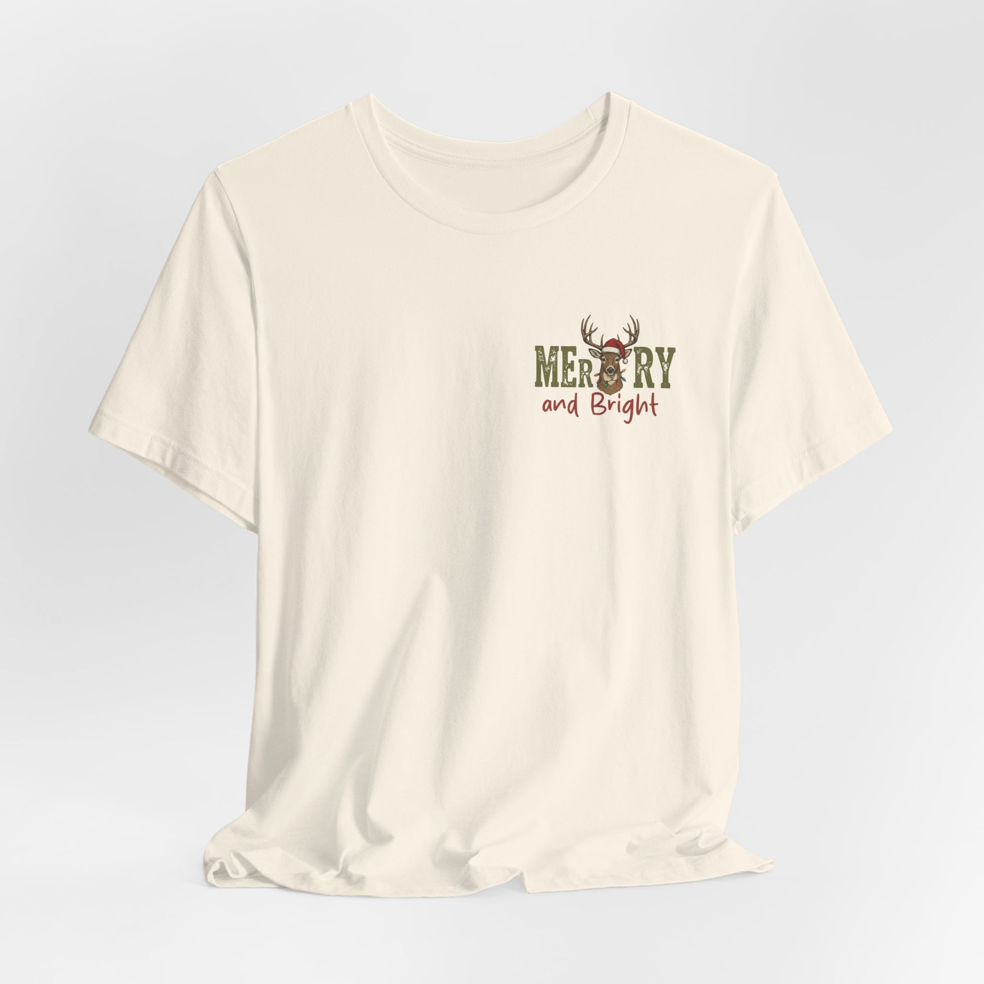Christmas T‑Shirt — Merry and Bright Camouflage Buck Tee