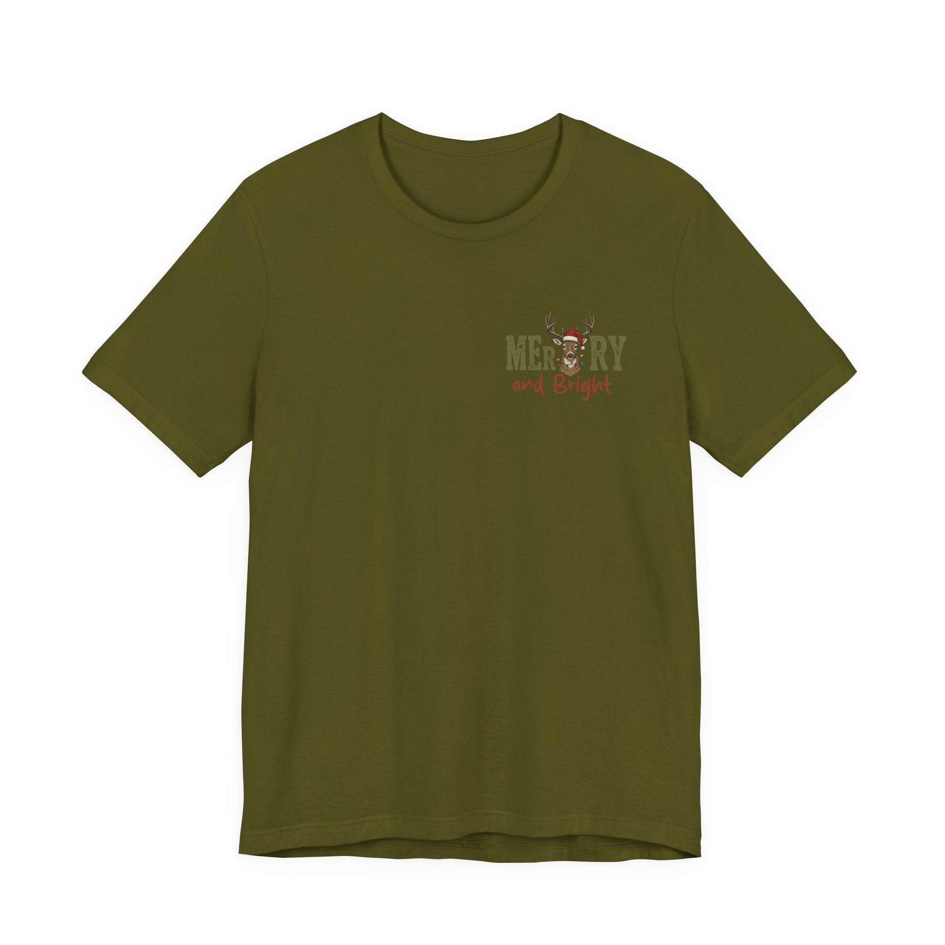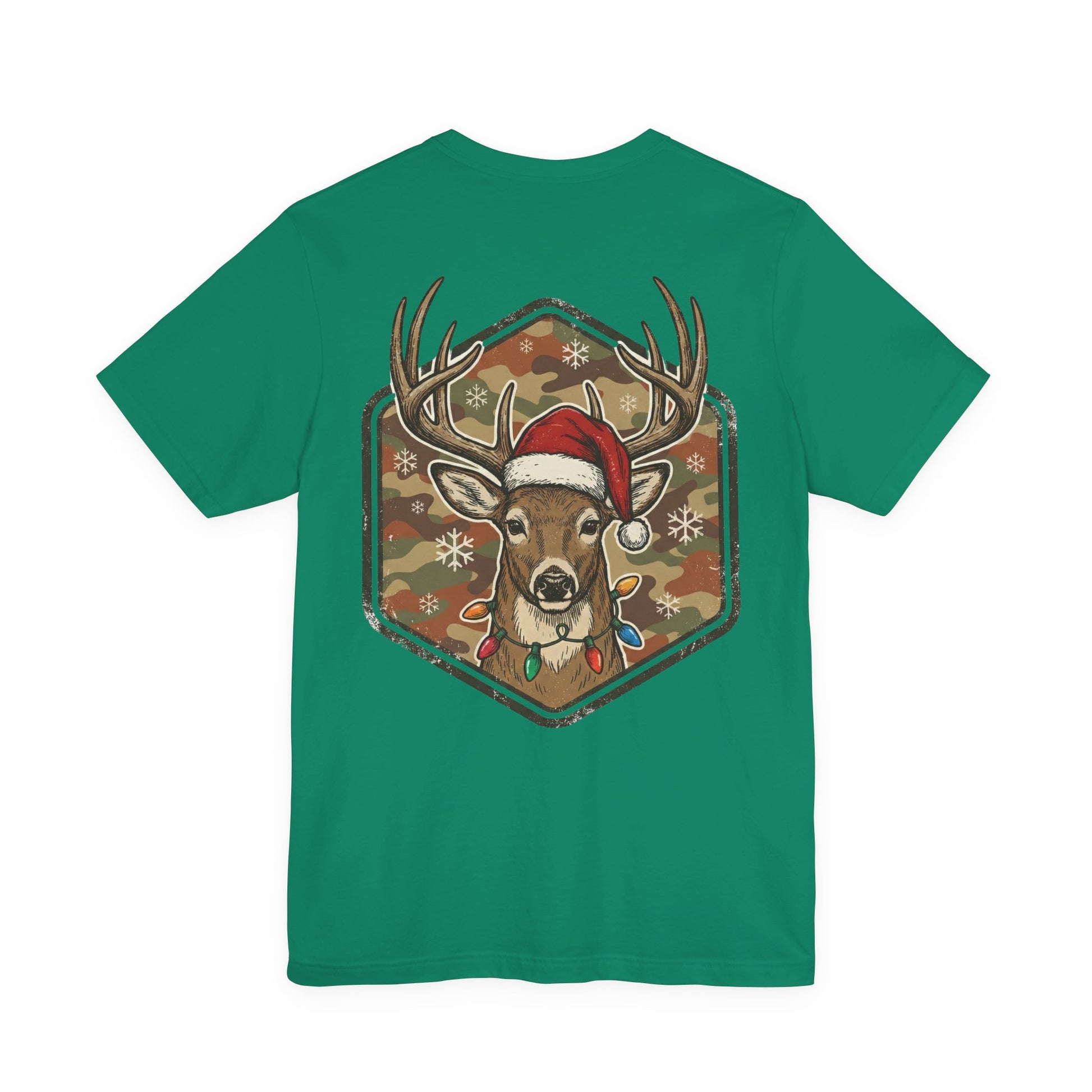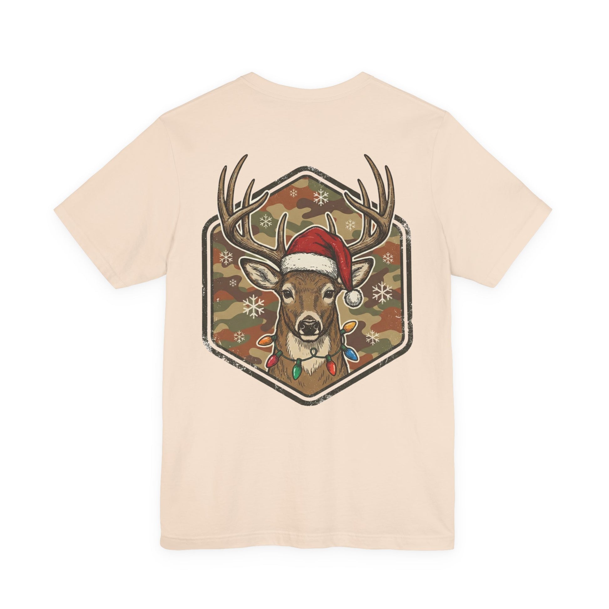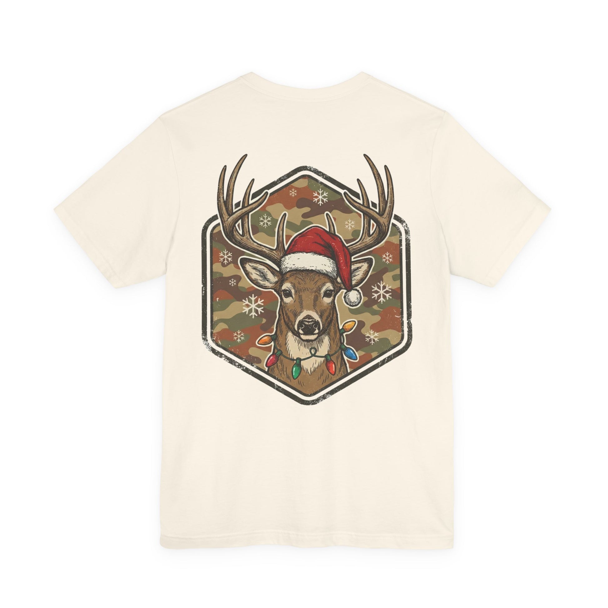 Christmas T‑Shirt — Merry and Bright Camouflage Buck Tee