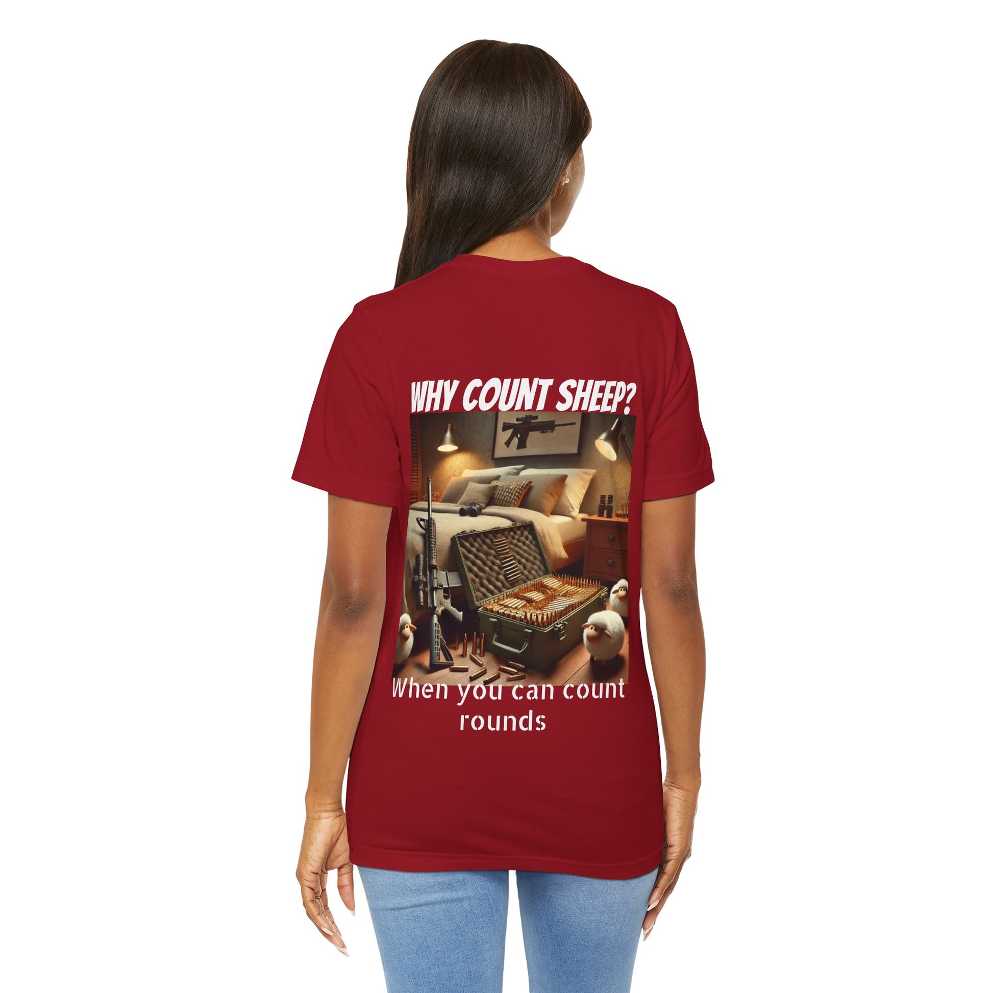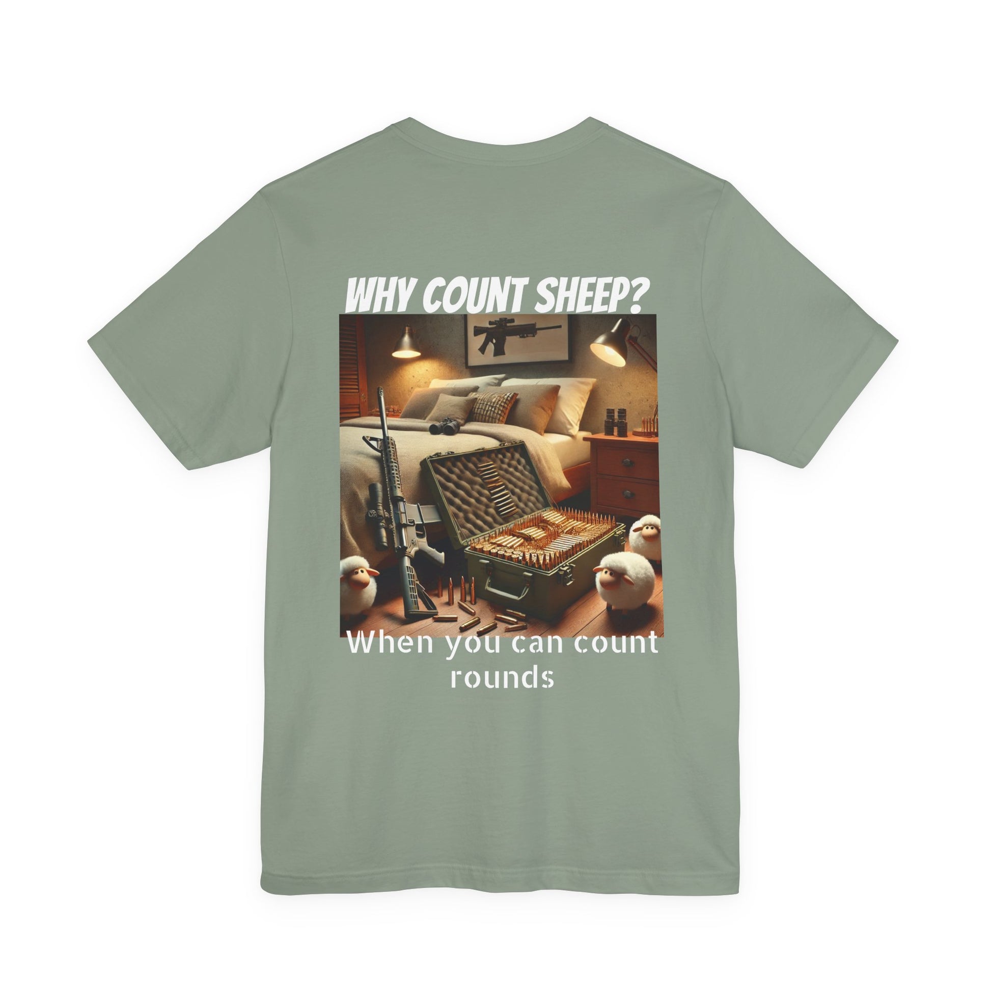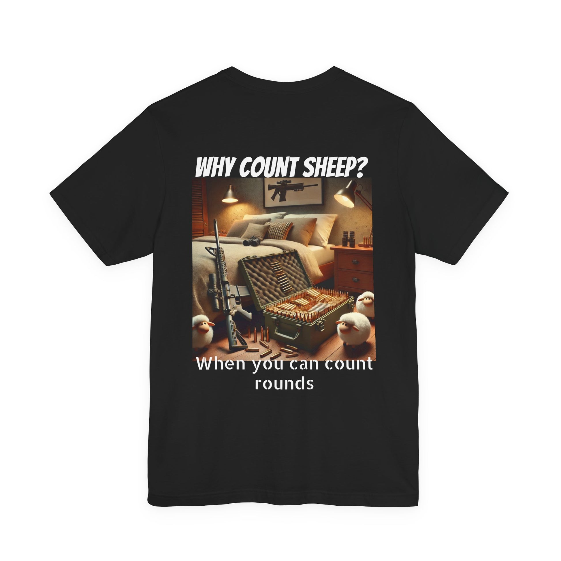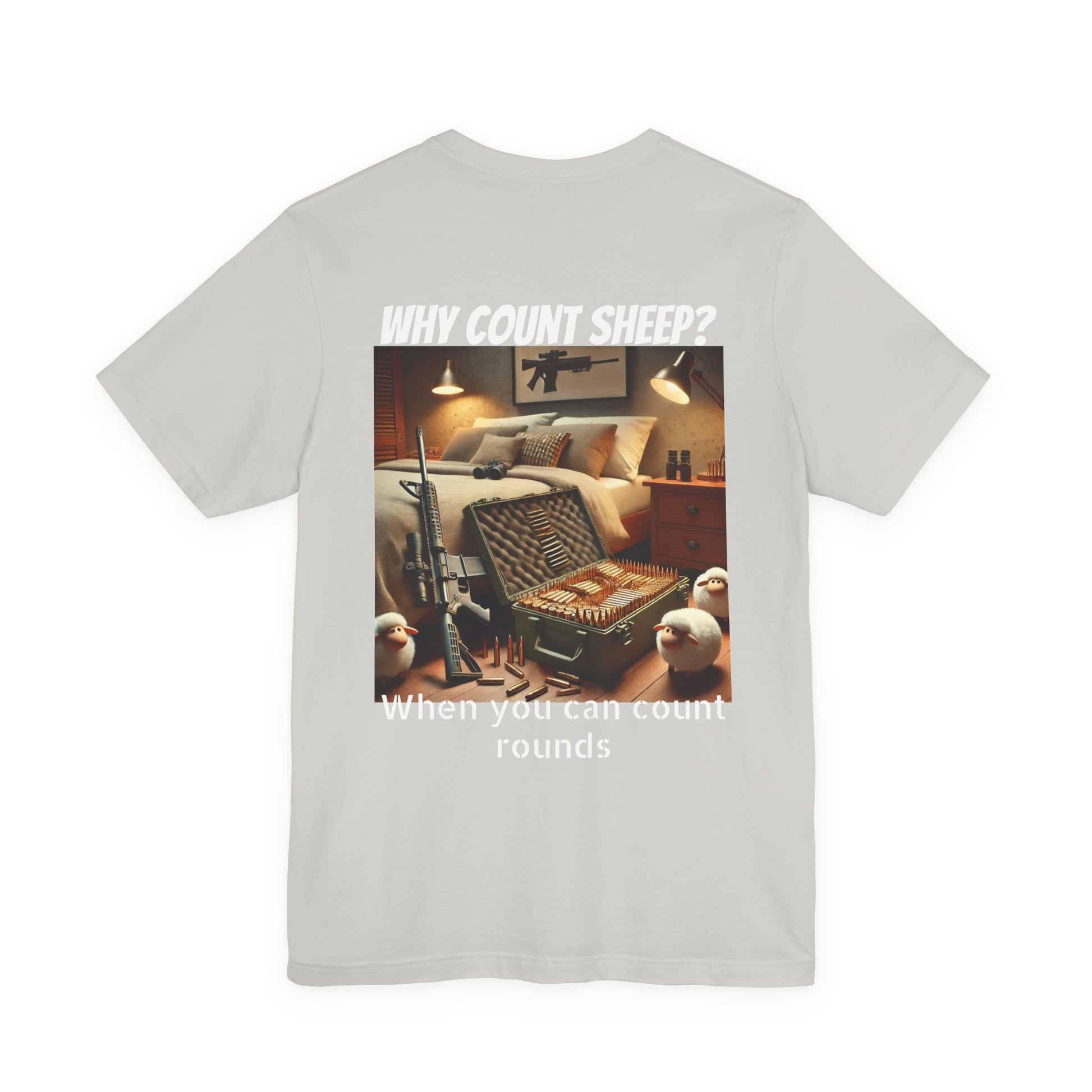 Stay cozy and entertained with this humorous T-Shirt featuring a design of counting ammo instead of sheep. Perfect for those who enjoy a touch of humor in their everyday wardrobe. Ideal for gifting on birthdays, holidays, or just as a fun surprise for friends and family.
