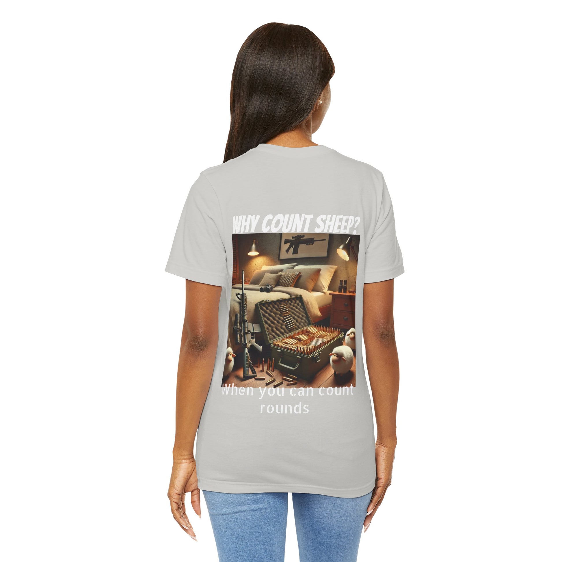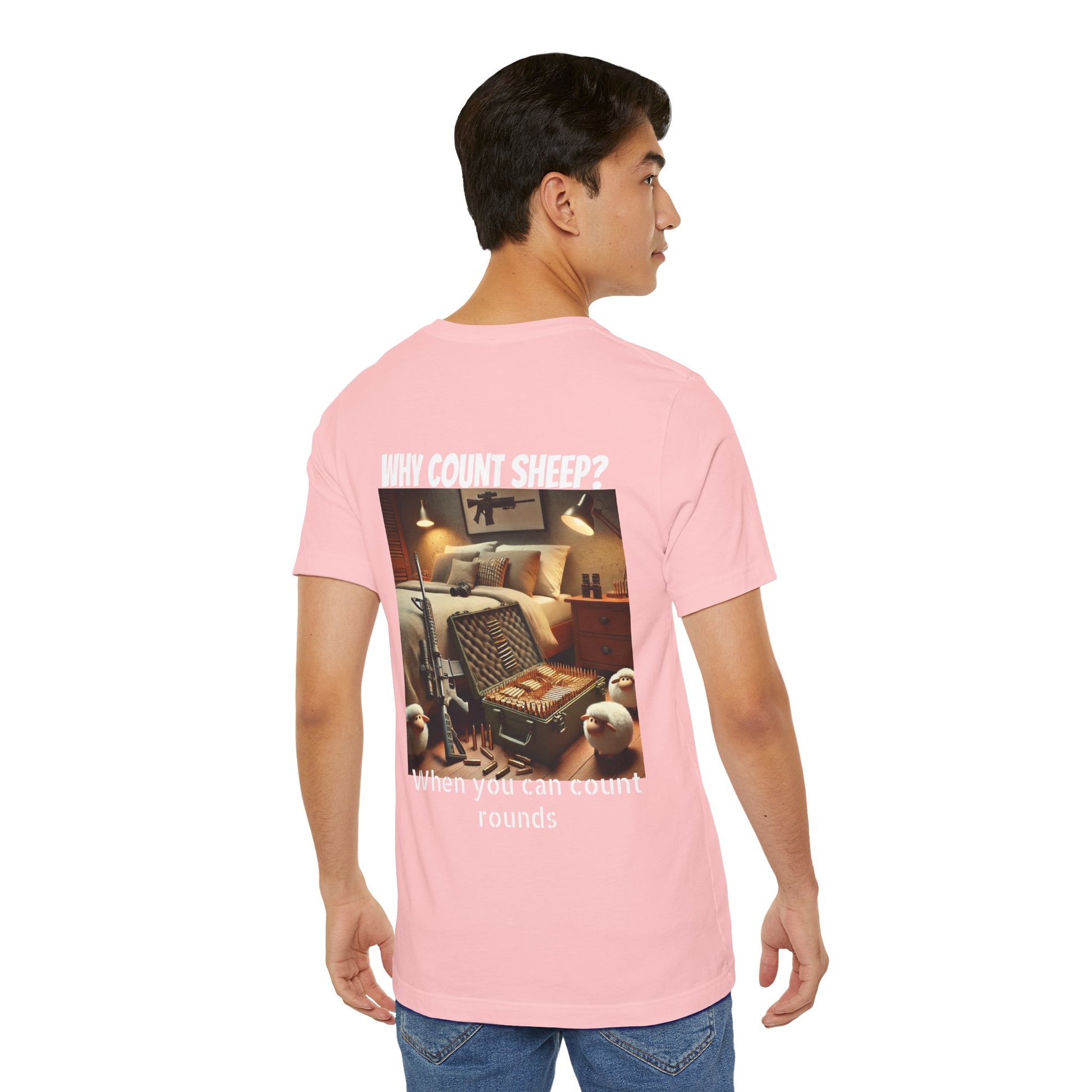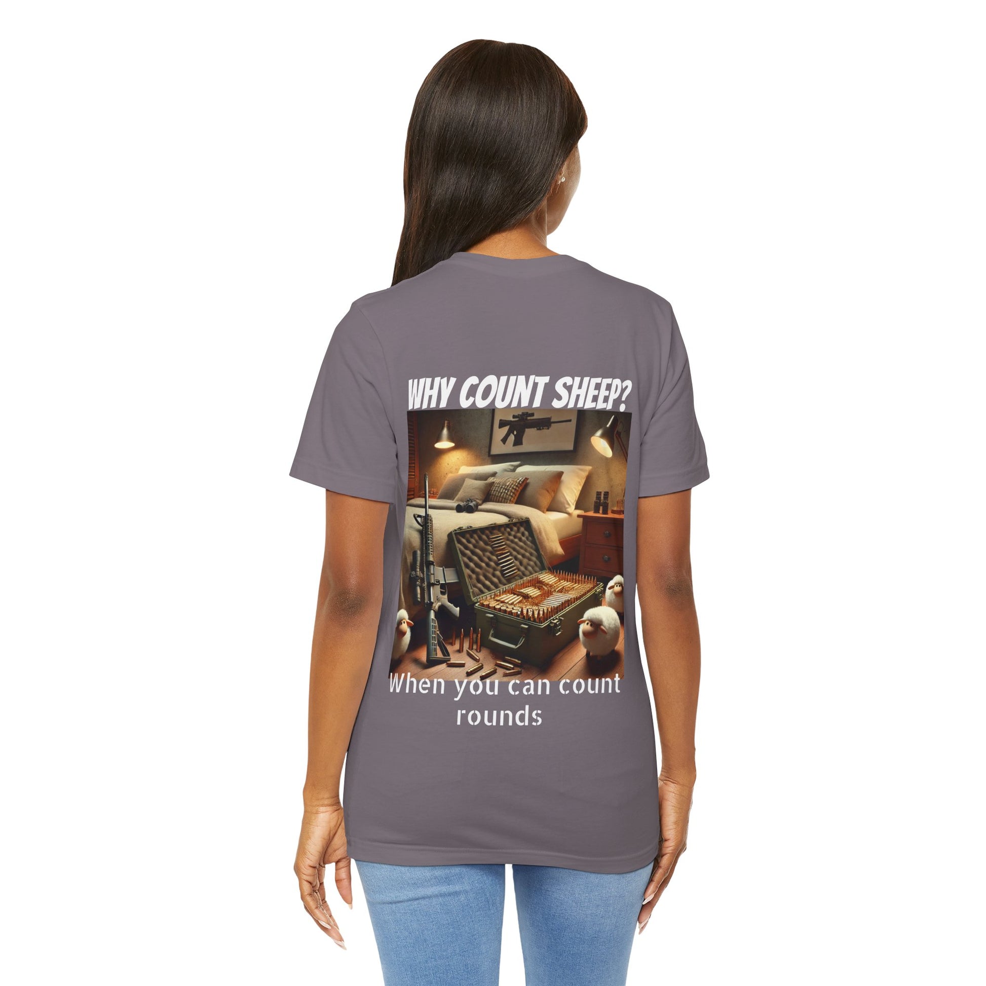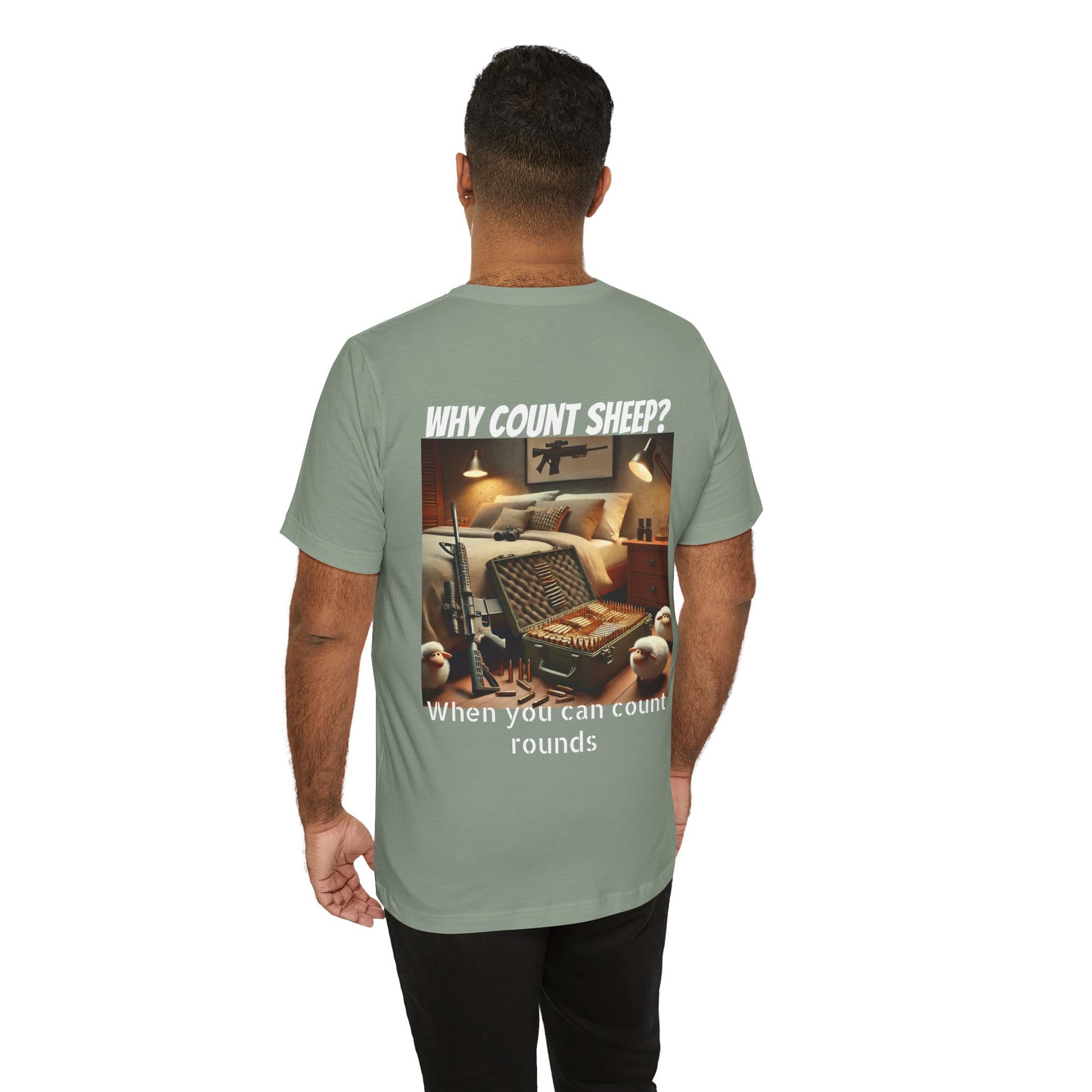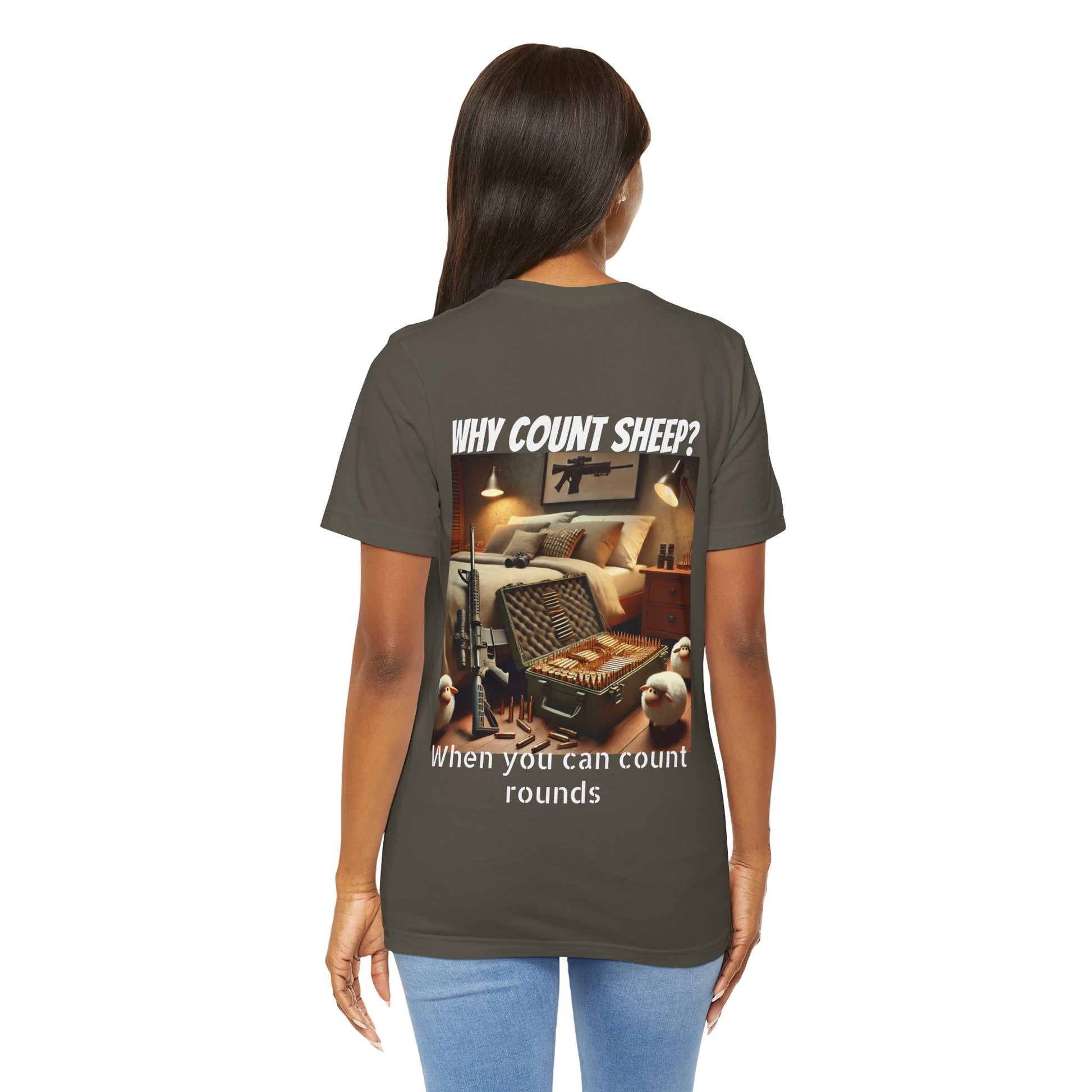 Stay cozy and entertained with this humorous T-Shirt featuring a design of counting ammo instead of sheep. Perfect for those who enjoy a touch of humor in their everyday wardrobe. Ideal for gifting on birthdays, holidays, or just as a fun surprise for friends and family.