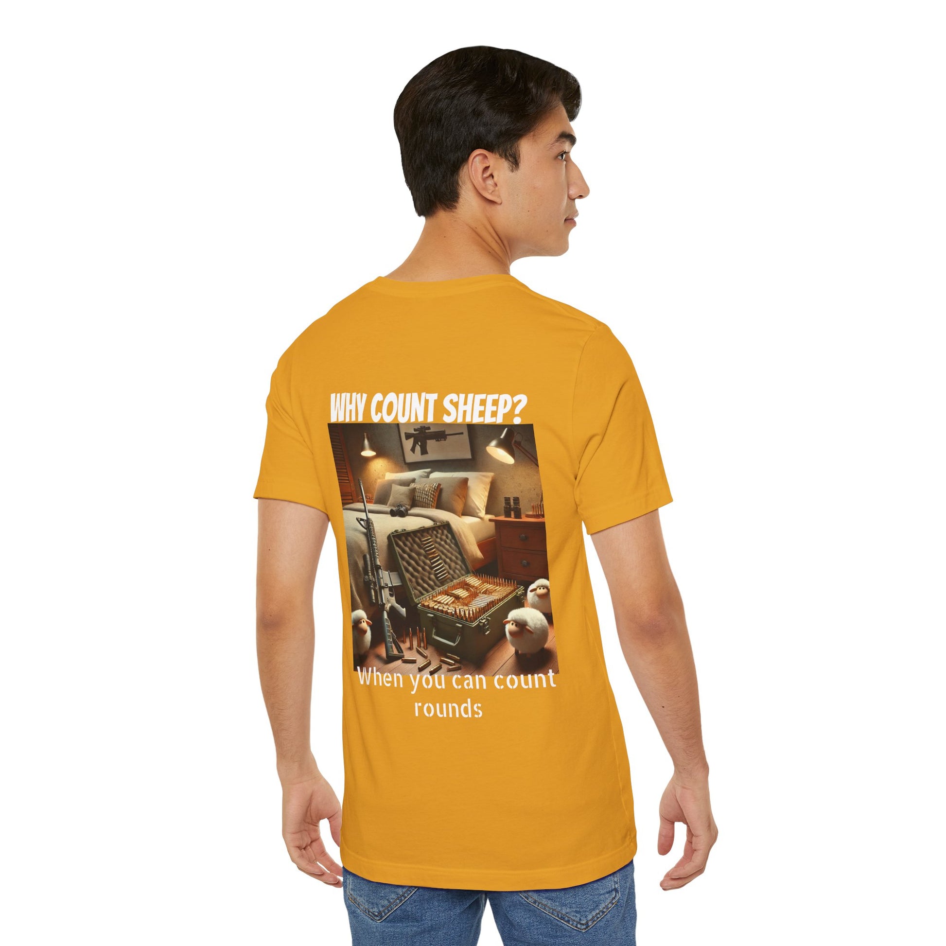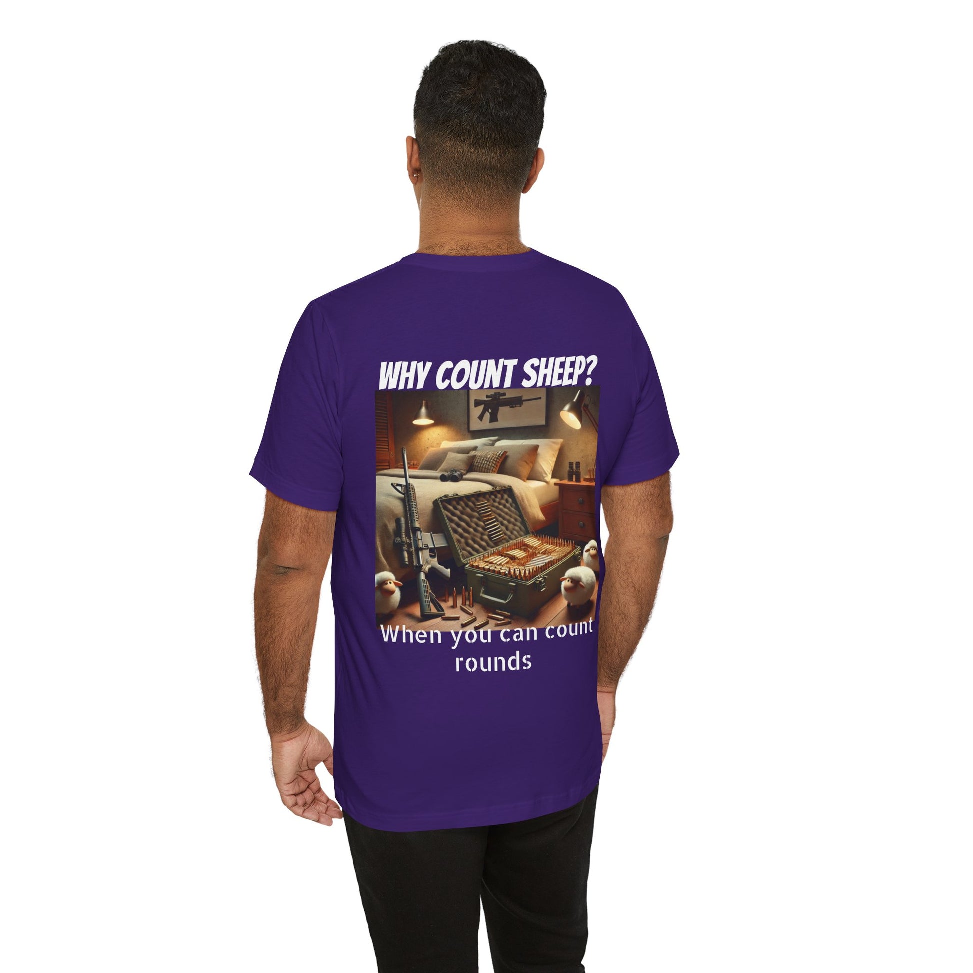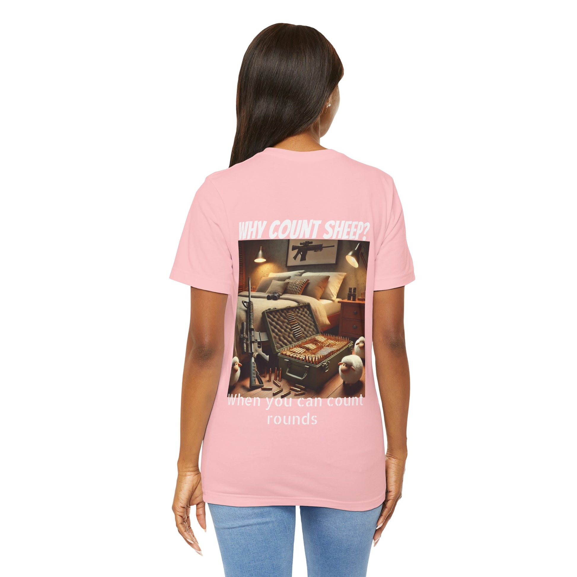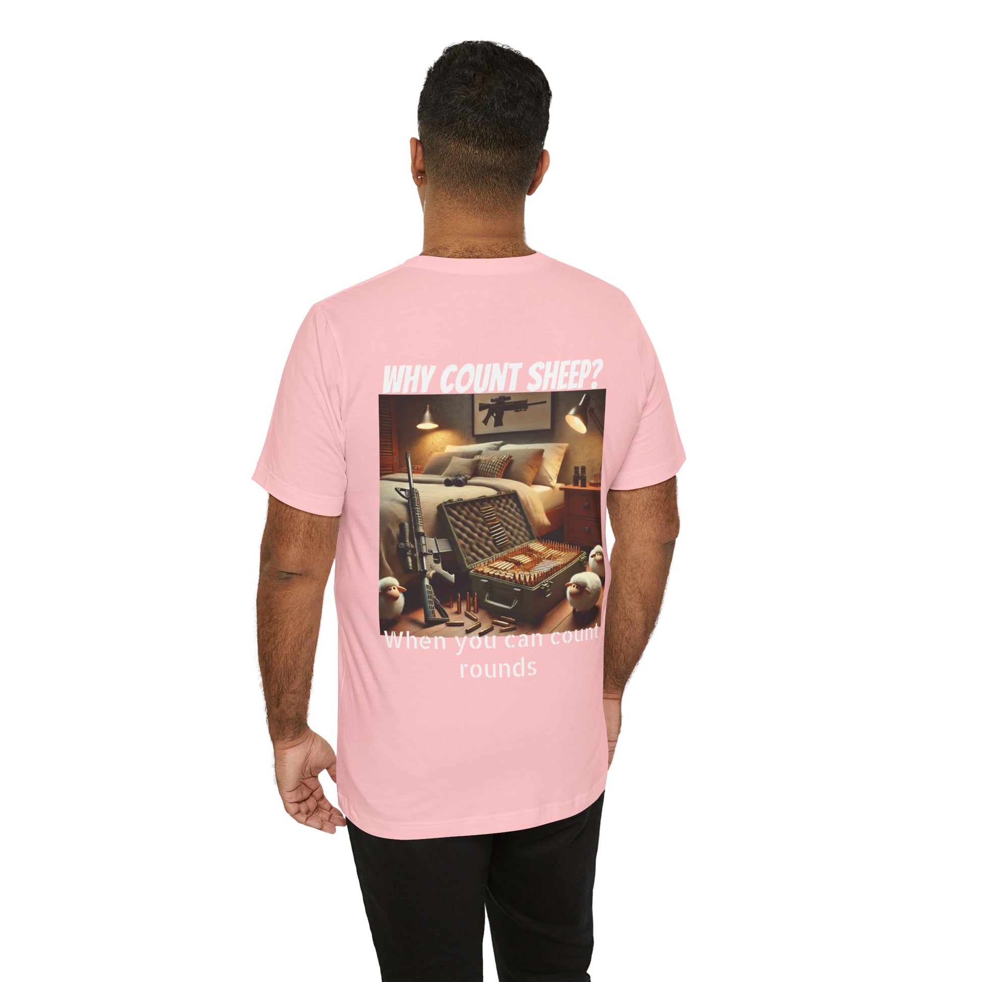Stay cozy and entertained with this humorous T-Shirt featuring a design of counting ammo instead of sheep. Perfect for those who enjoy a touch of humor in their everyday wardrobe. Ideal for gifting on birthdays, holidays, or just as a fun surprise for friends and family.