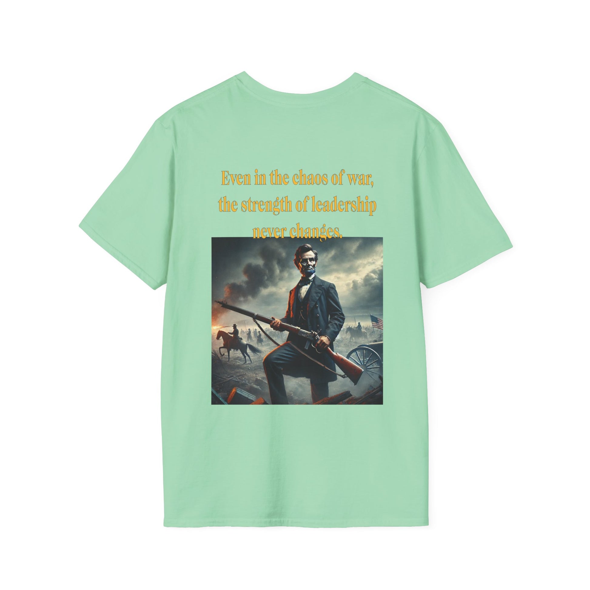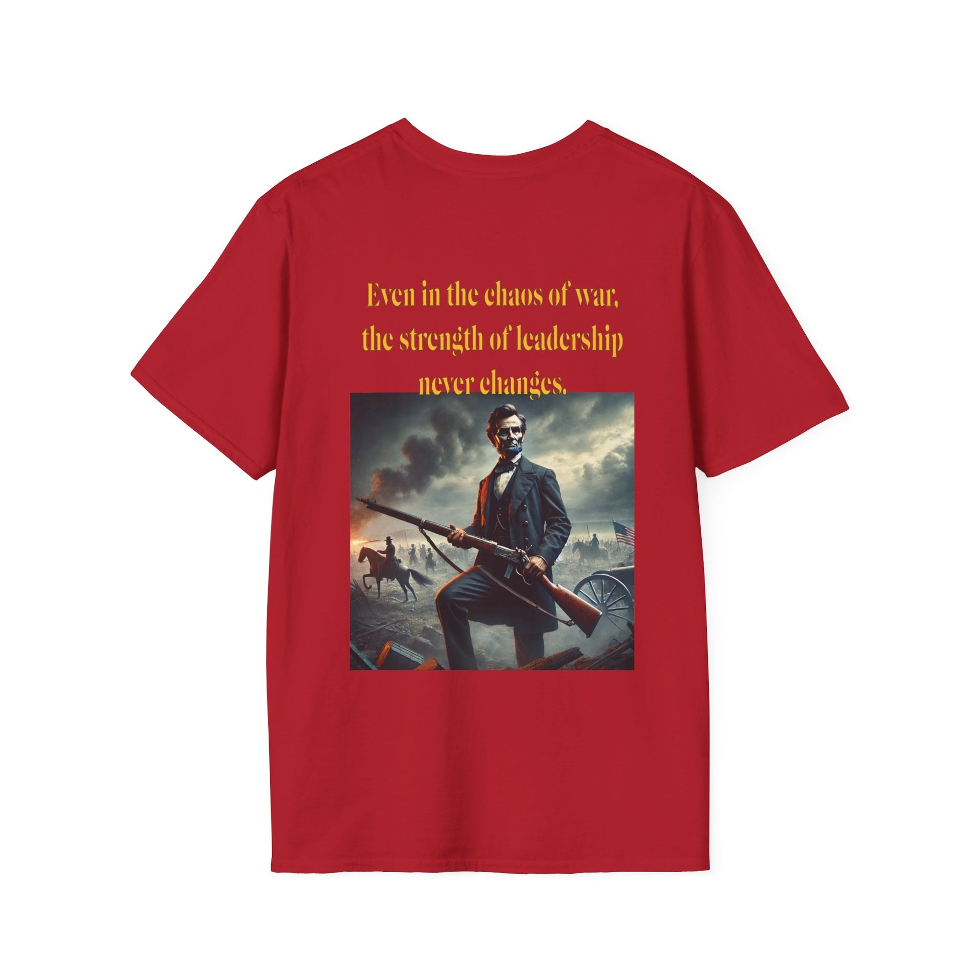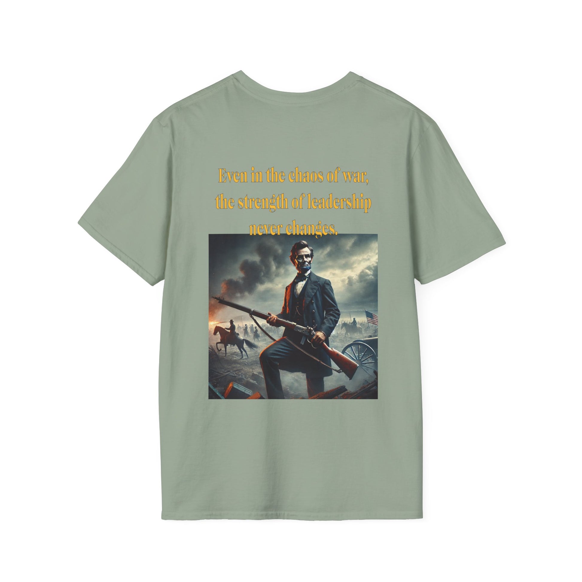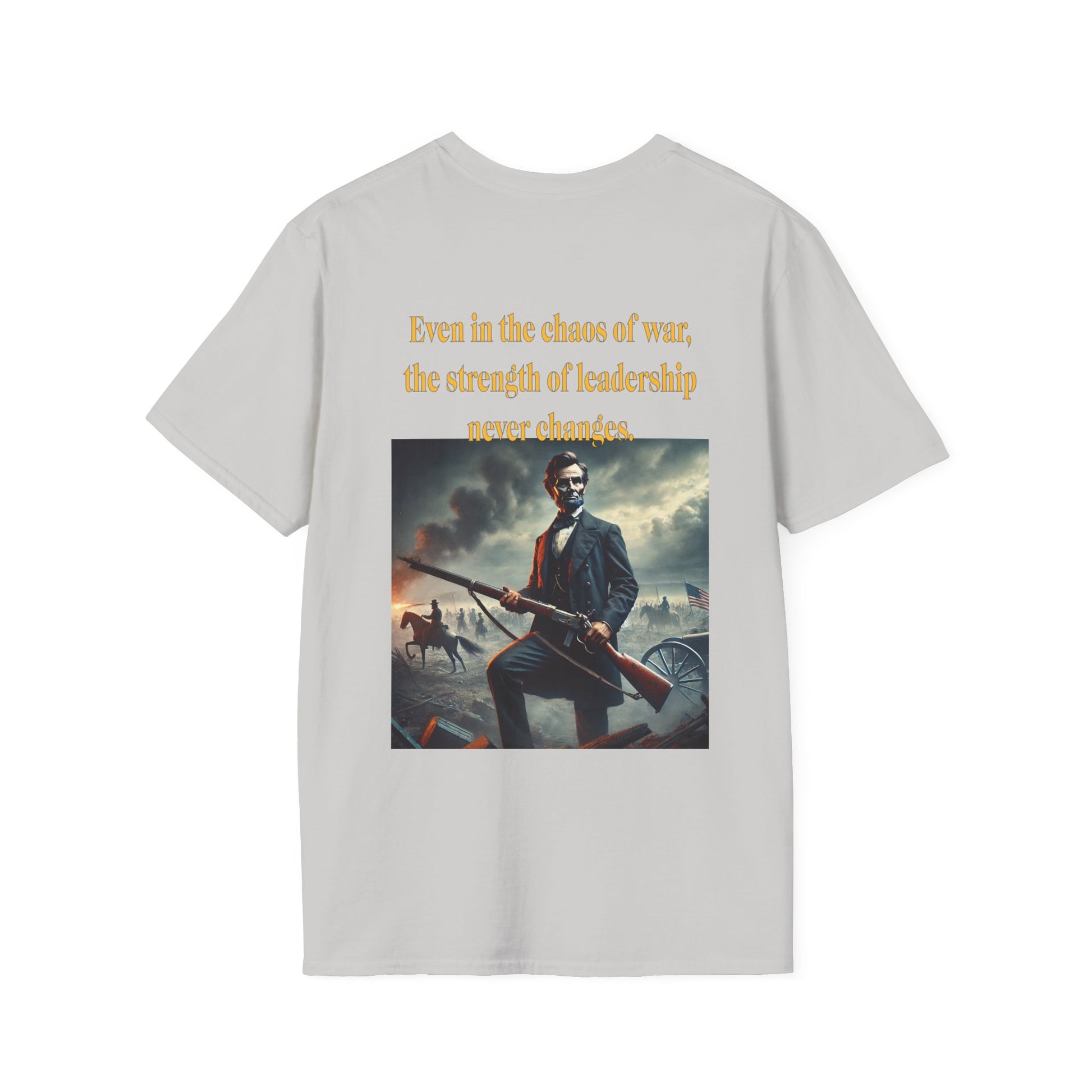 Embrace a bold piece of history with our "Lincoln’s Stand" t-shirt. This striking design features President Abraham Lincoln holding a rifle, a powerful symbol of leadership and strength during a time of national strife. This shirt blends historical reverence with a touch of rugged resolve, celebrating Lincoln’s enduring legacy of courage and determination. Perfect for history enthusiasts and those who admire the spirit of leadership, this tee is a standout choice for making a statement about resilience and the values that shaped a nation.