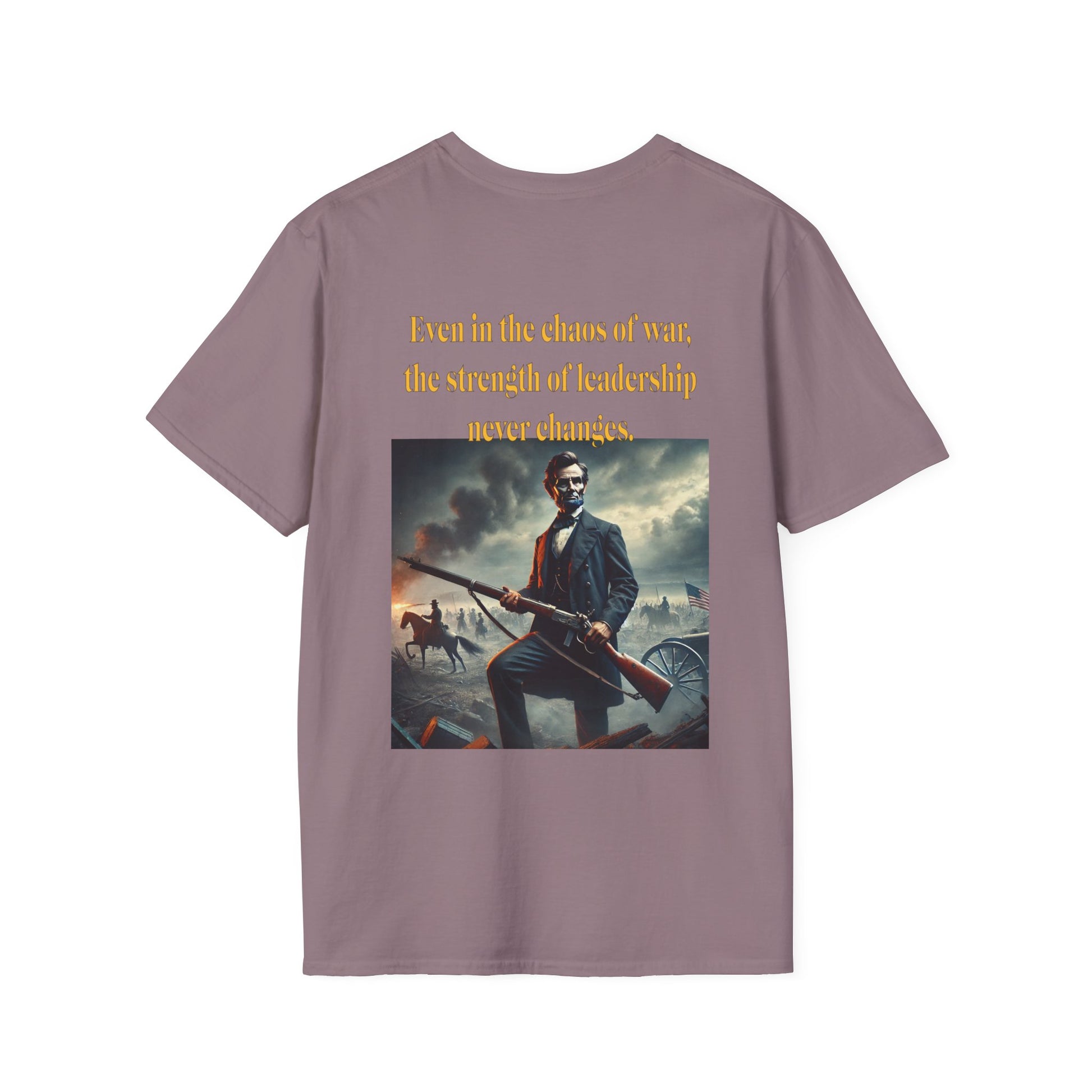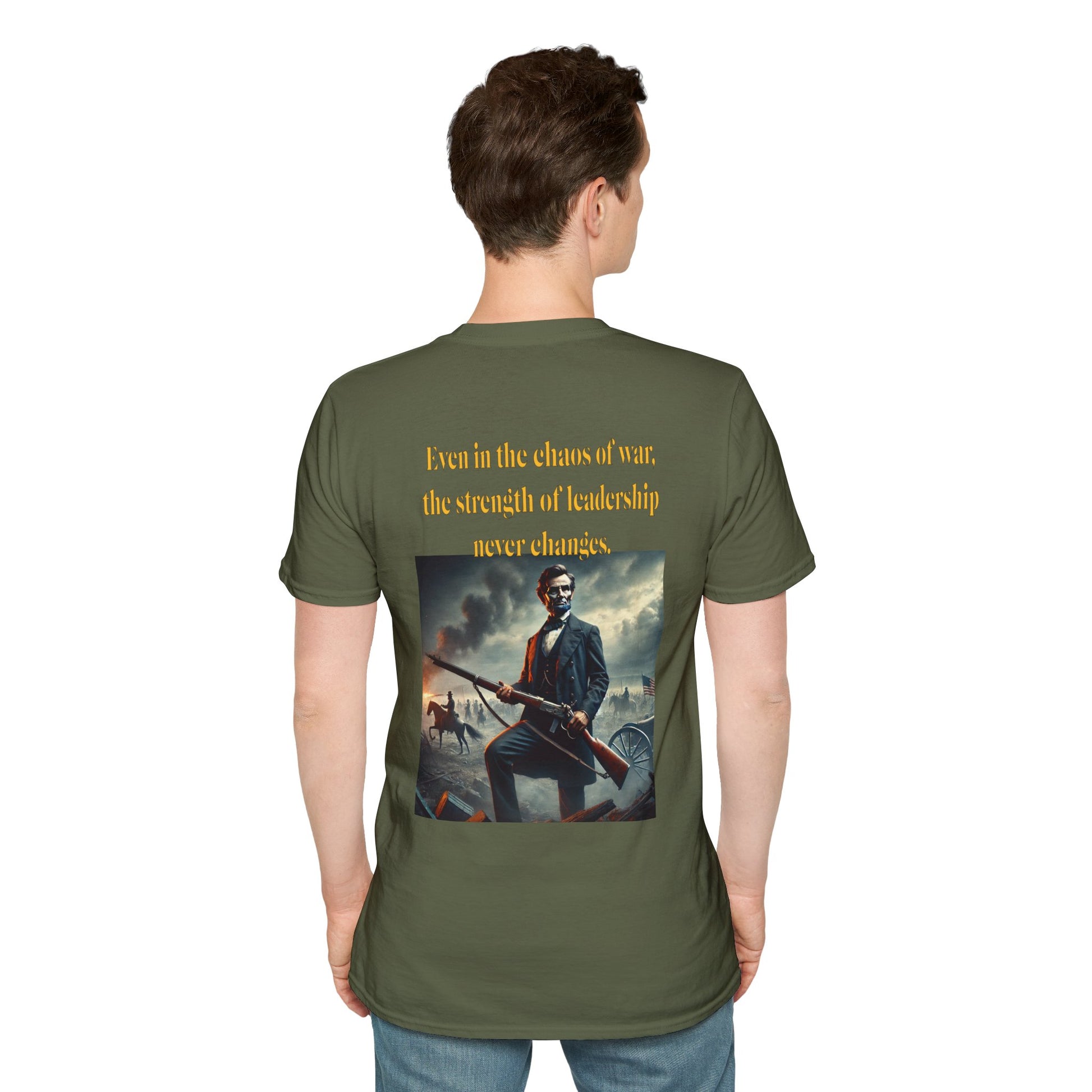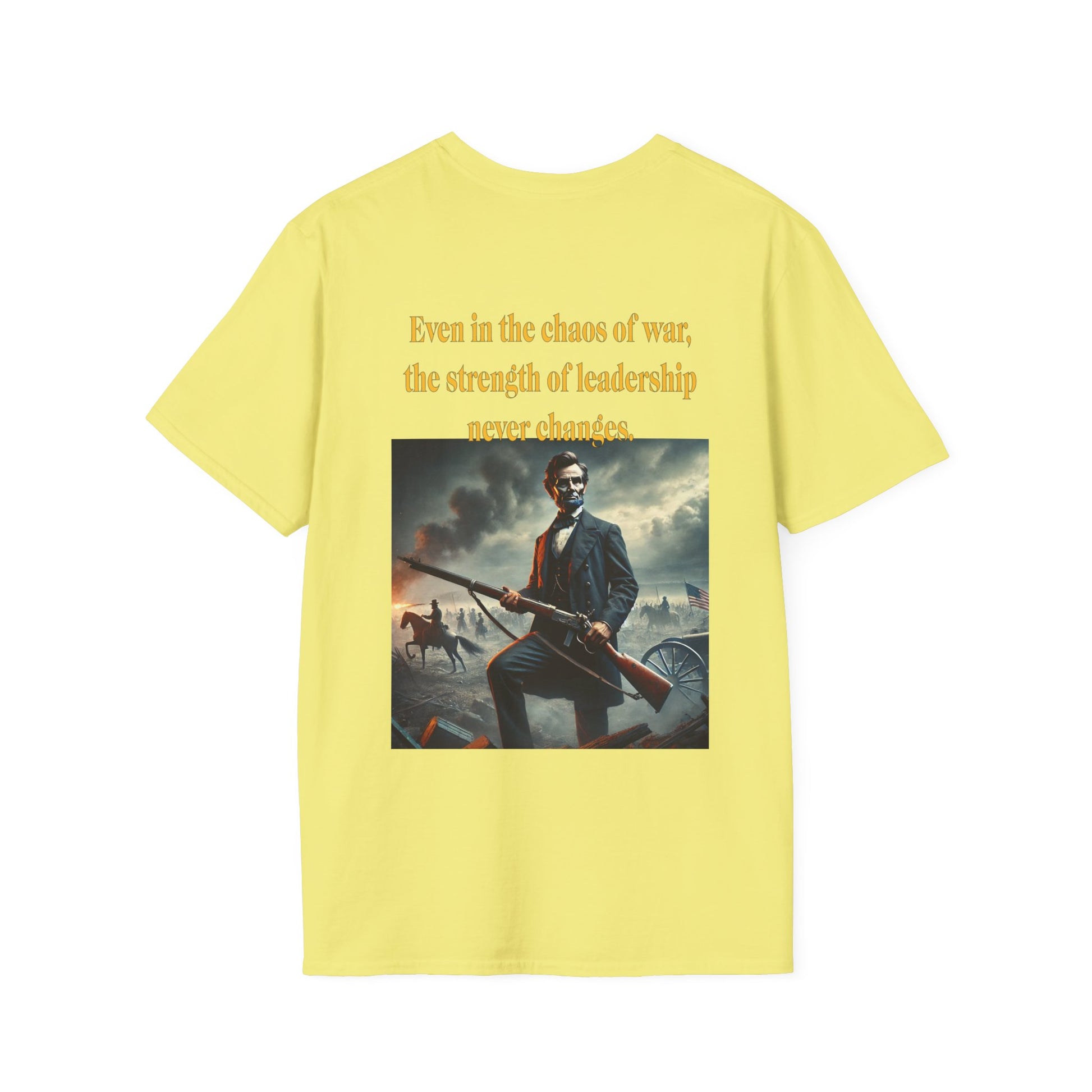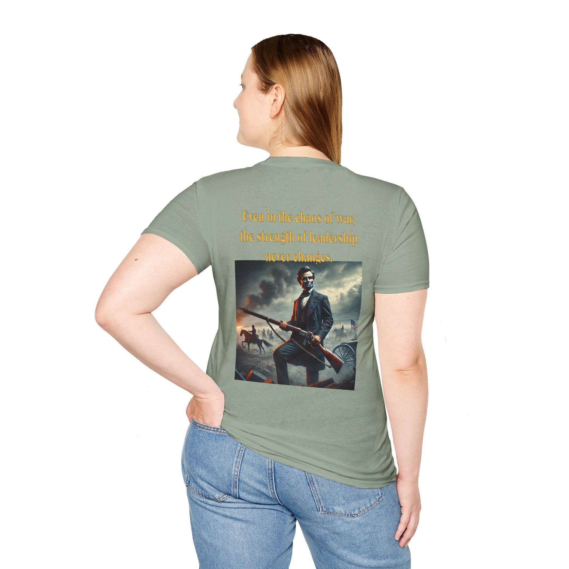 Embrace a bold piece of history with our "Lincoln’s Stand" t-shirt. This striking design features President Abraham Lincoln holding a rifle, a powerful symbol of leadership and strength during a time of national strife. This shirt blends historical reverence with a touch of rugged resolve, celebrating Lincoln’s enduring legacy of courage and determination. Perfect for history enthusiasts and those who admire the spirit of leadership, this tee is a standout choice for making a statement about resilience and the values that shaped a nation.