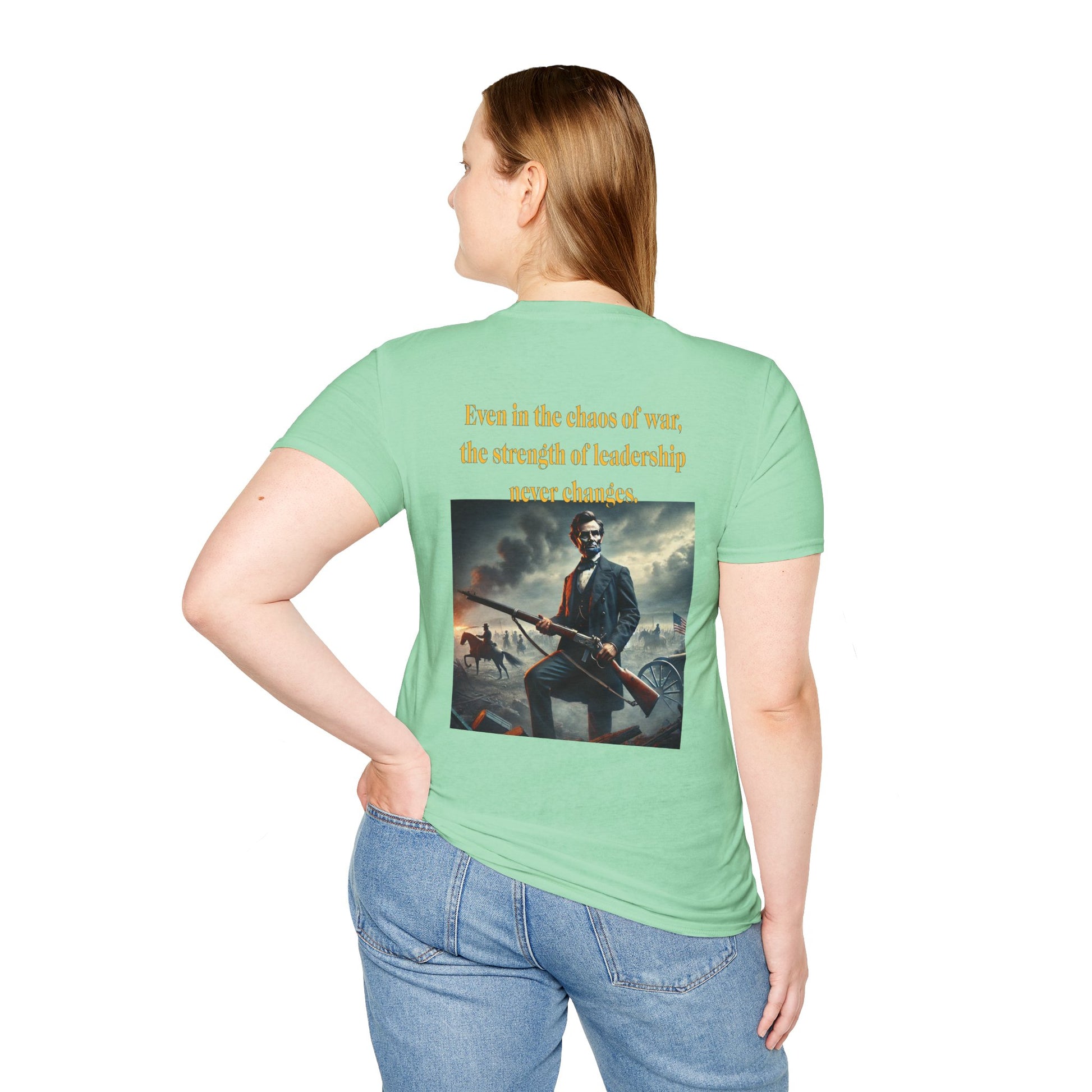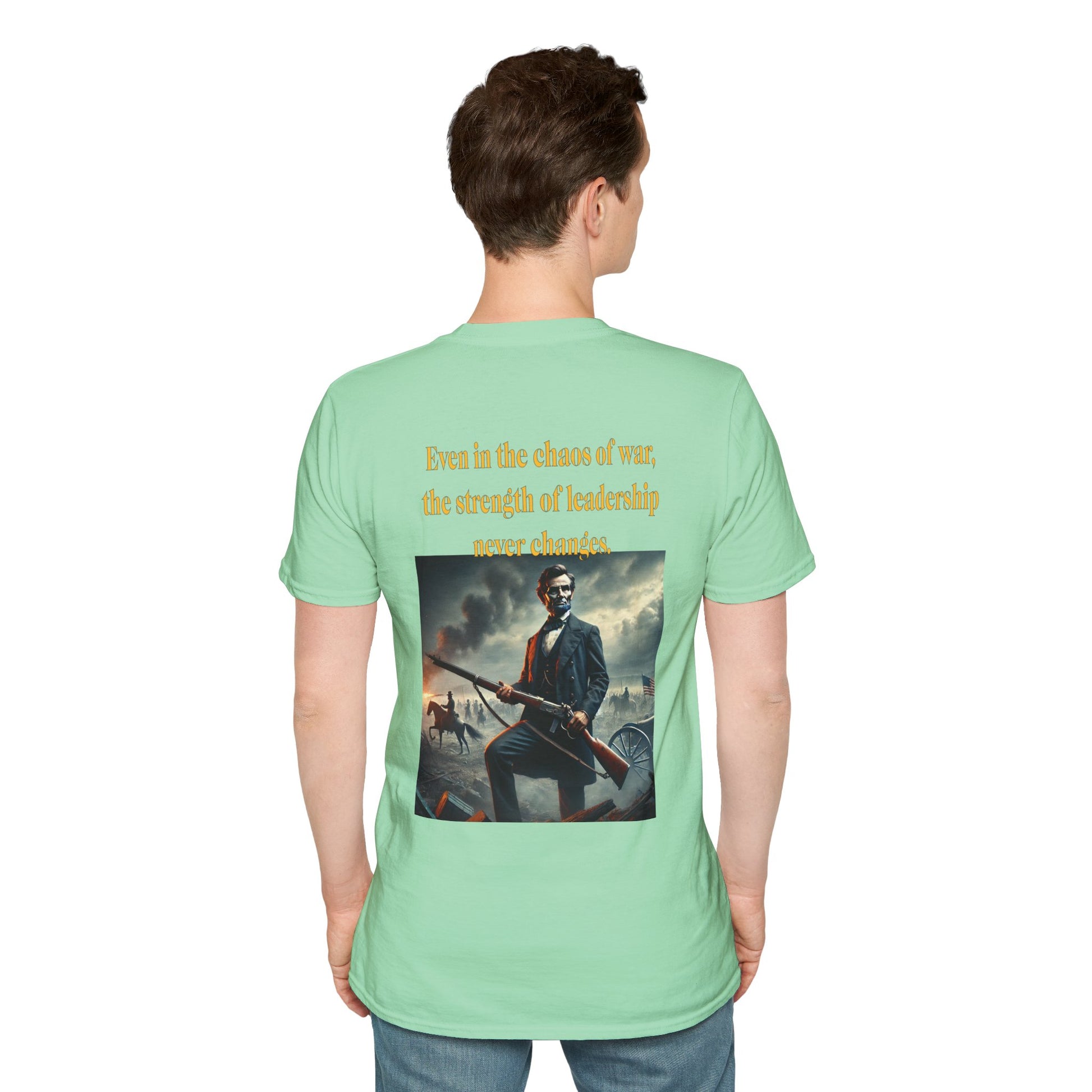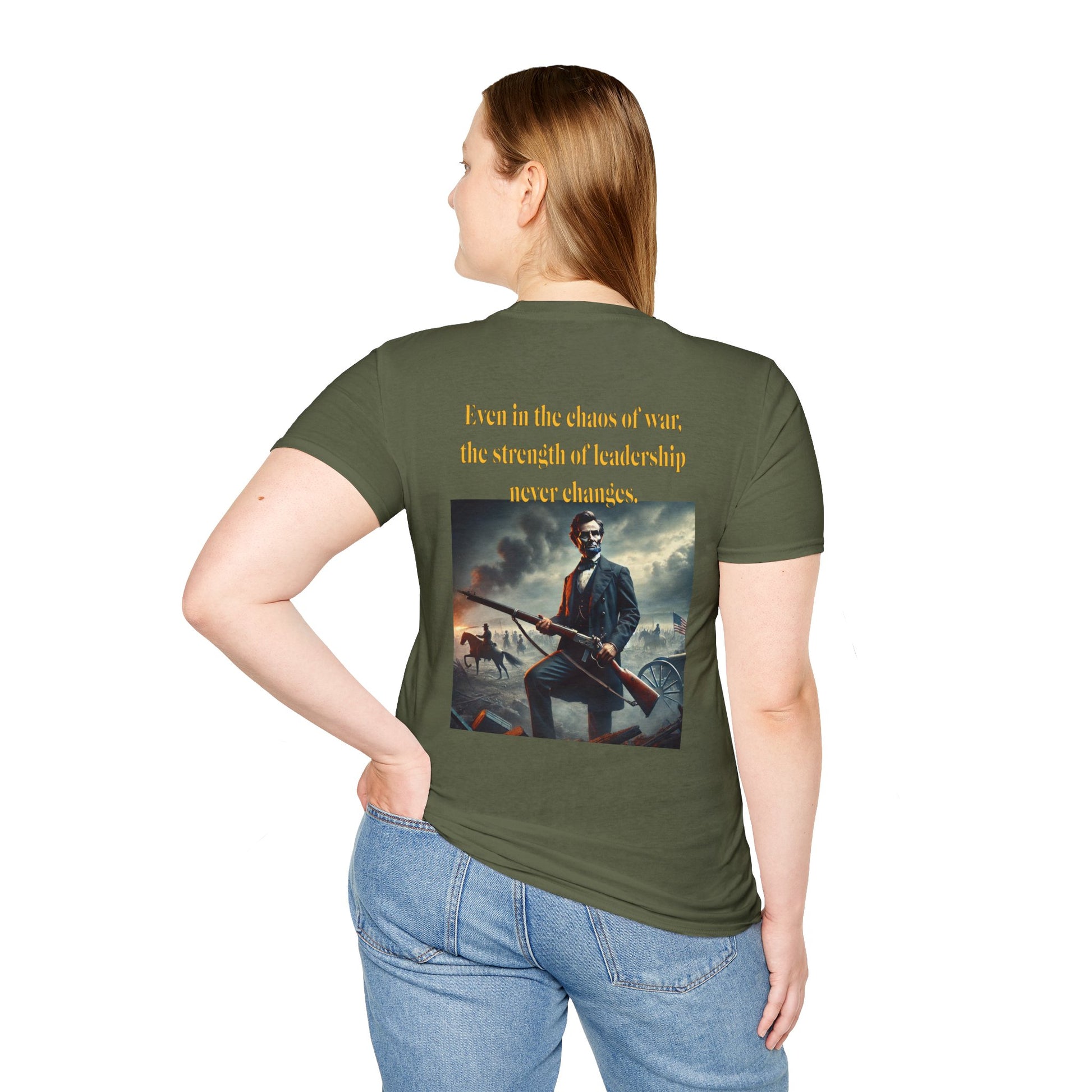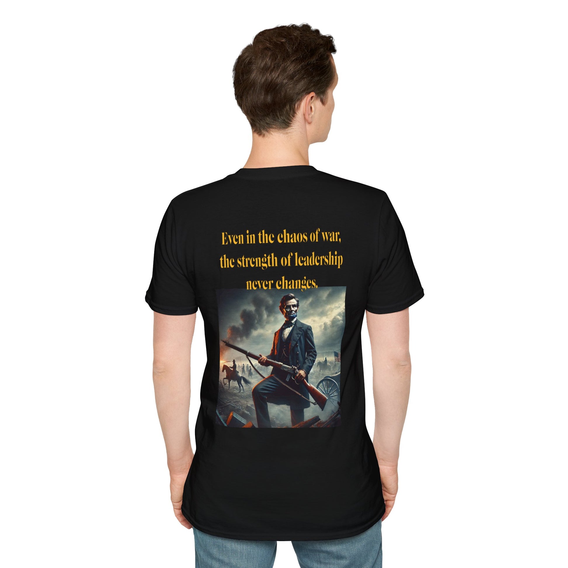 Embrace a bold piece of history with our "Lincoln’s Stand" t-shirt. This striking design features President Abraham Lincoln holding a rifle, a powerful symbol of leadership and strength during a time of national strife. This shirt blends historical reverence with a touch of rugged resolve, celebrating Lincoln’s enduring legacy of courage and determination. Perfect for history enthusiasts and those who admire the spirit of leadership, this tee is a standout choice for making a statement about resilience and the values that shaped a nation.
