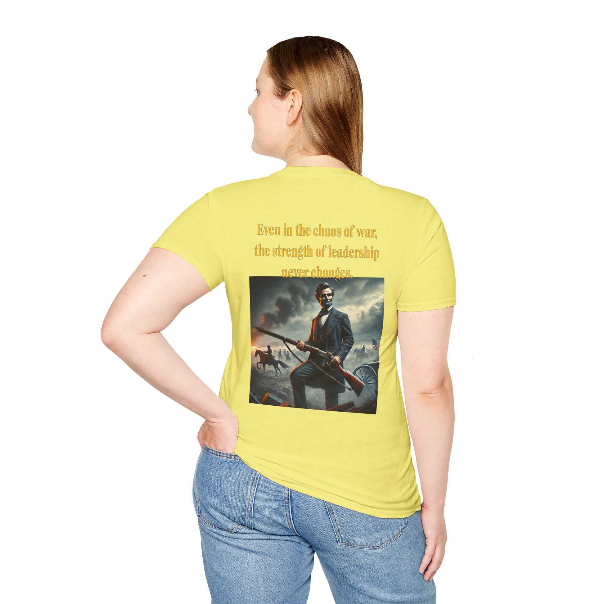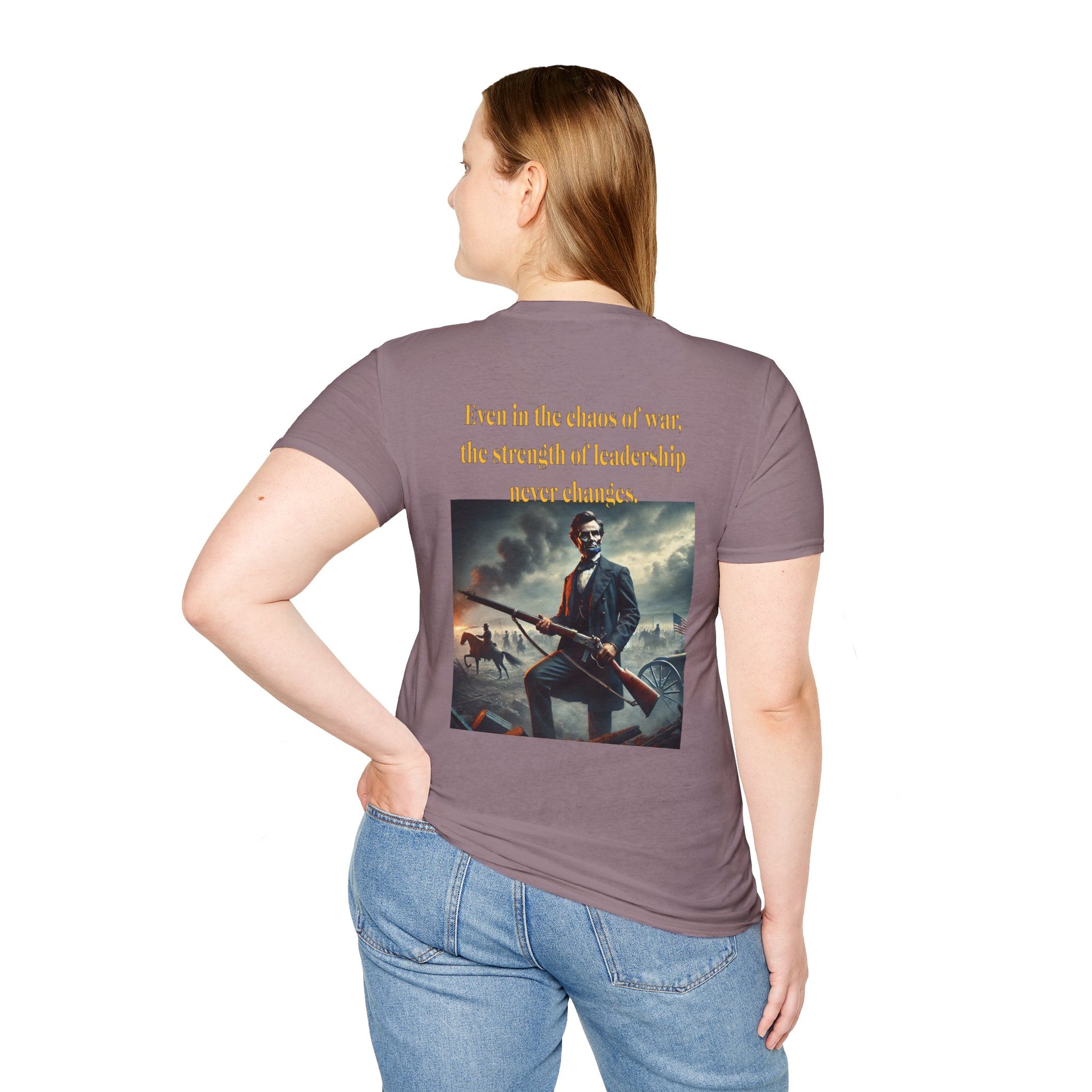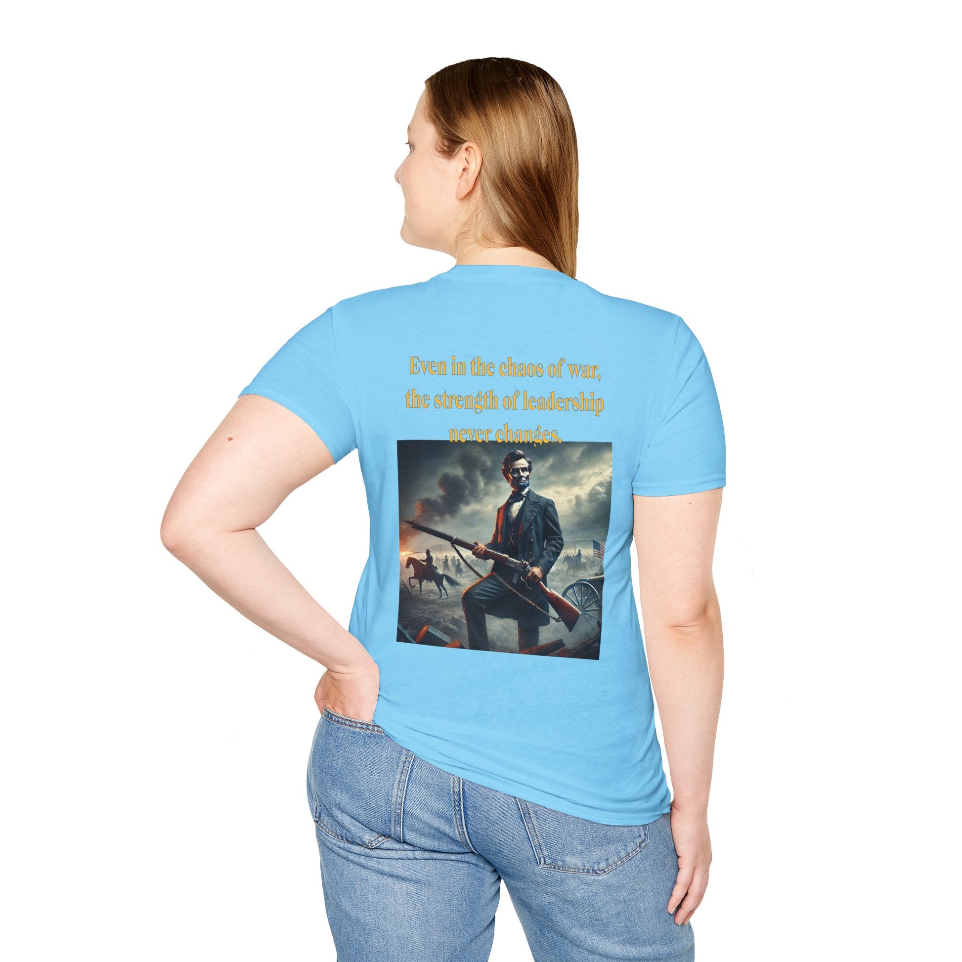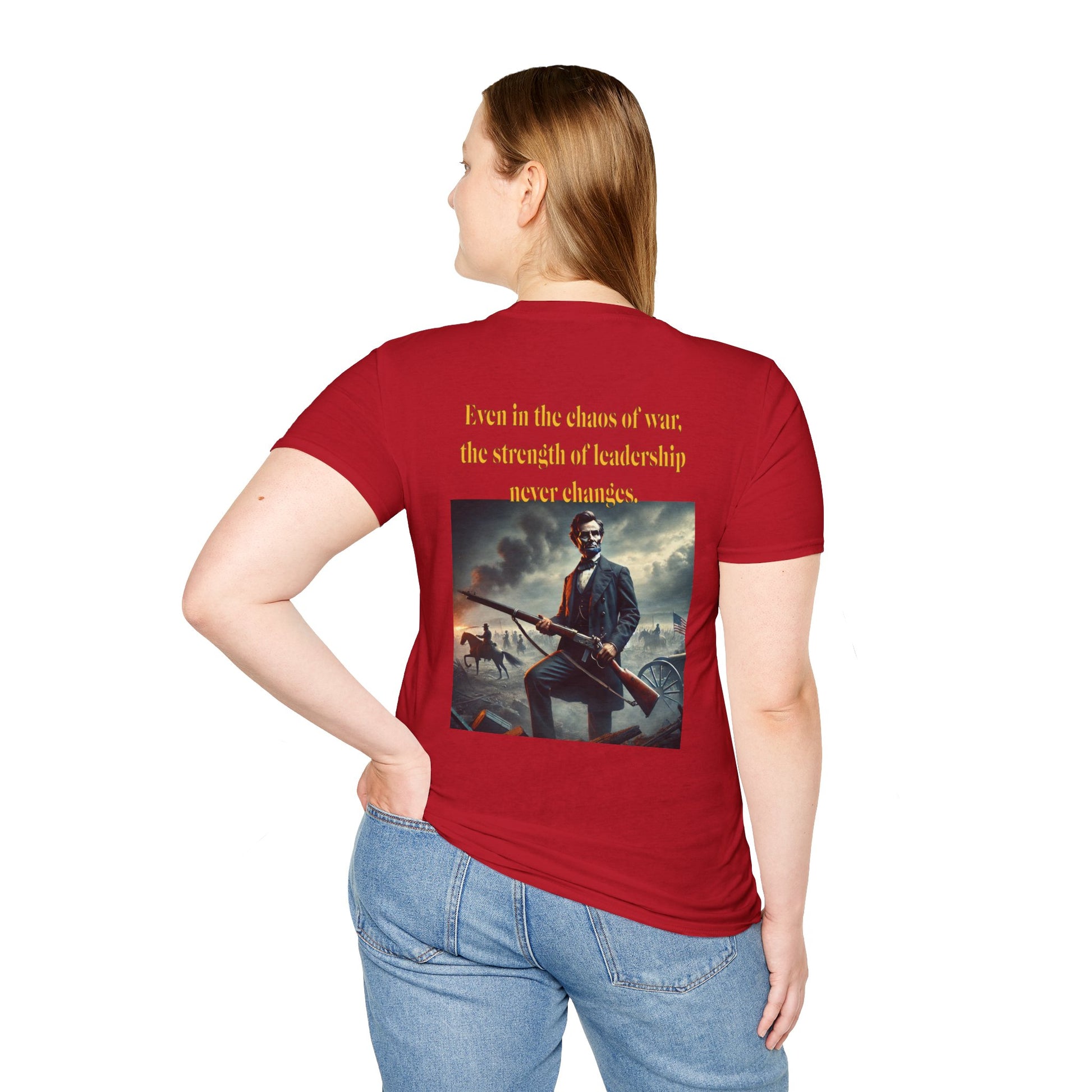 Embrace a bold piece of history with our "Lincoln’s Stand" t-shirt. This striking design features President Abraham Lincoln holding a rifle, a powerful symbol of leadership and strength during a time of national strife. This shirt blends historical reverence with a touch of rugged resolve, celebrating Lincoln’s enduring legacy of courage and determination. Perfect for history enthusiasts and those who admire the spirit of leadership, this tee is a standout choice for making a statement about resilience and the values that shaped a nation.
