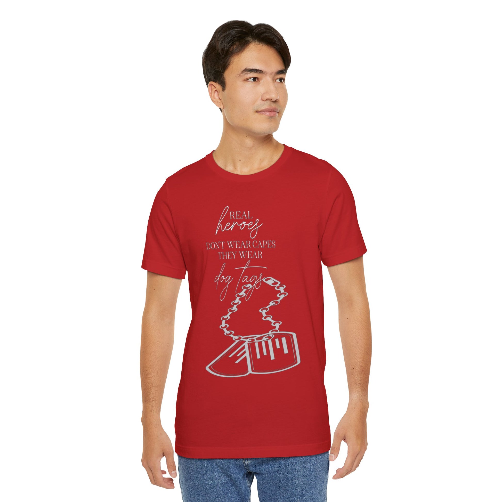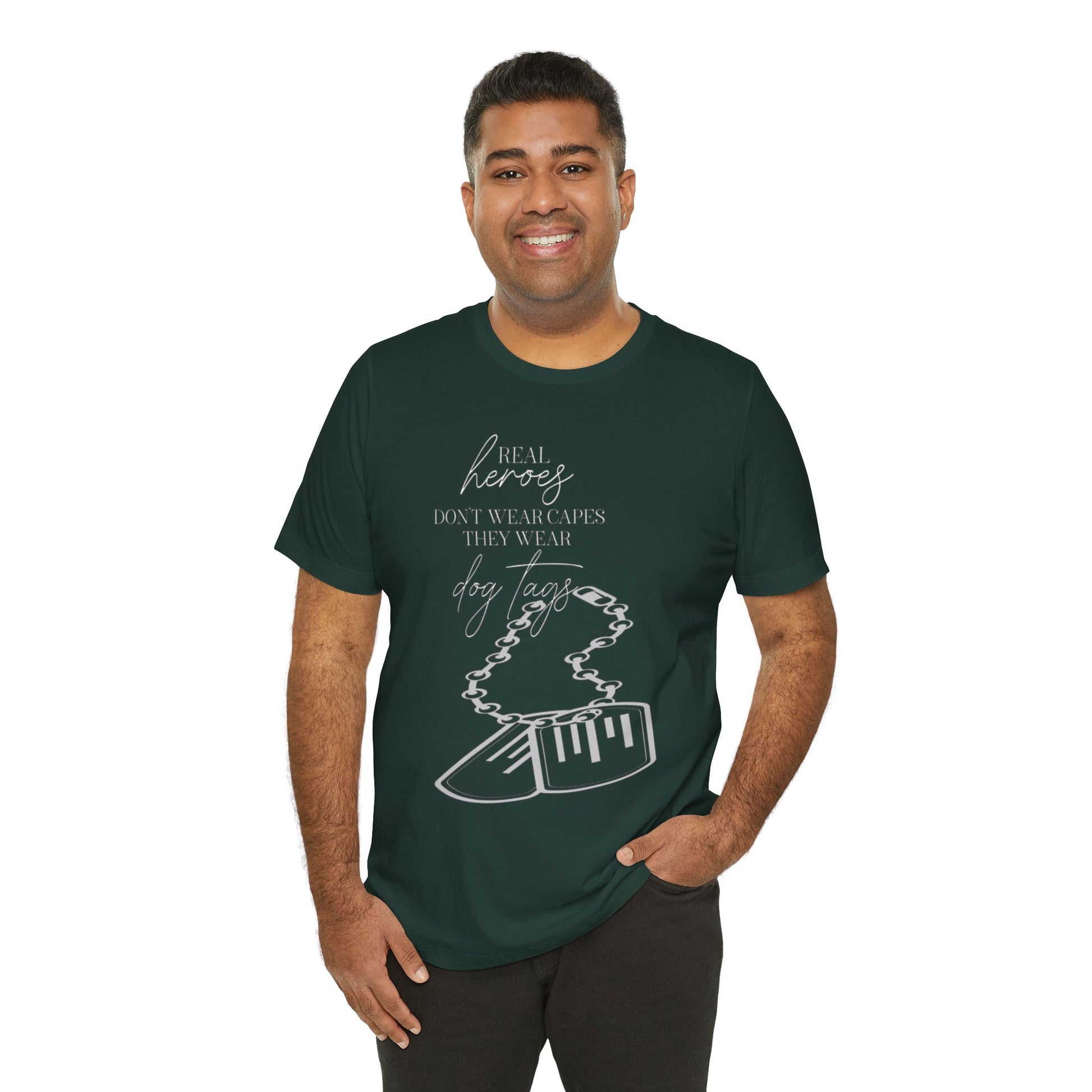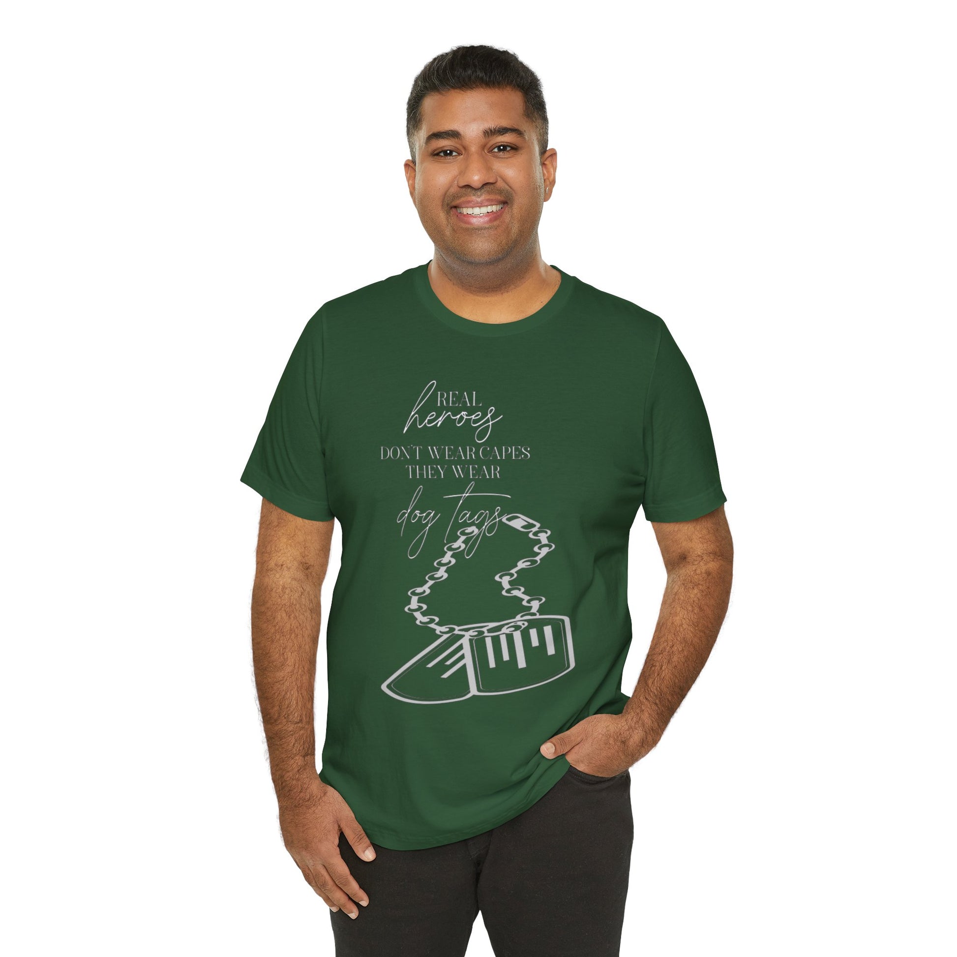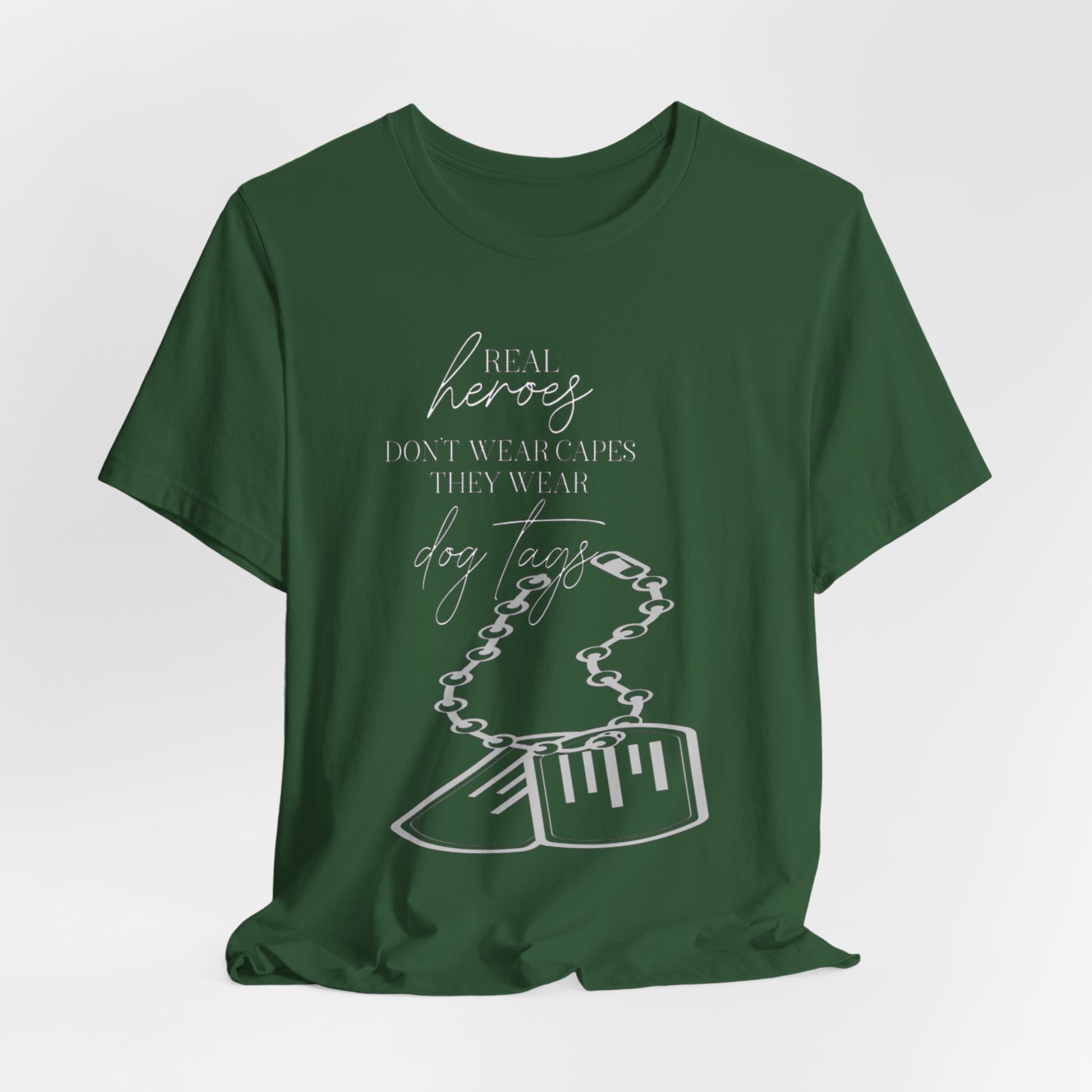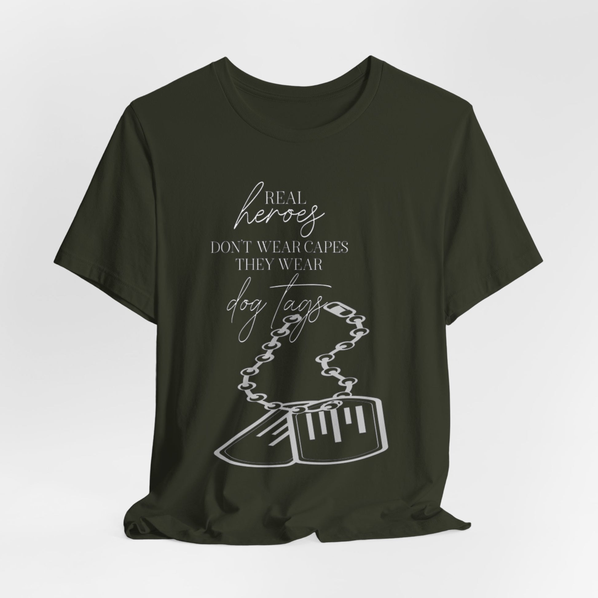 Super Hero, Military Hero, T-Shirt with Quote about Hero Not Wearing Capes They Wear Dog Tags
