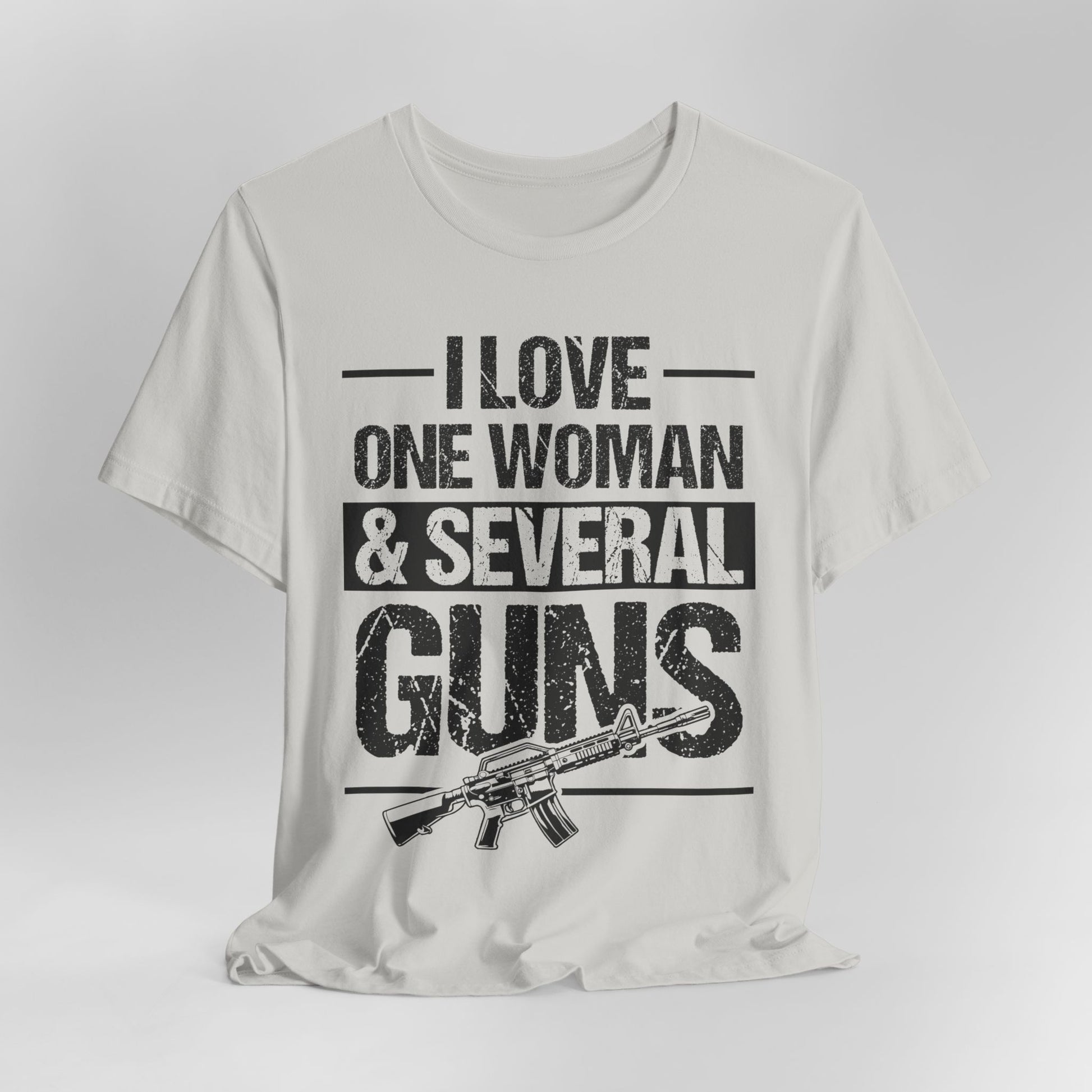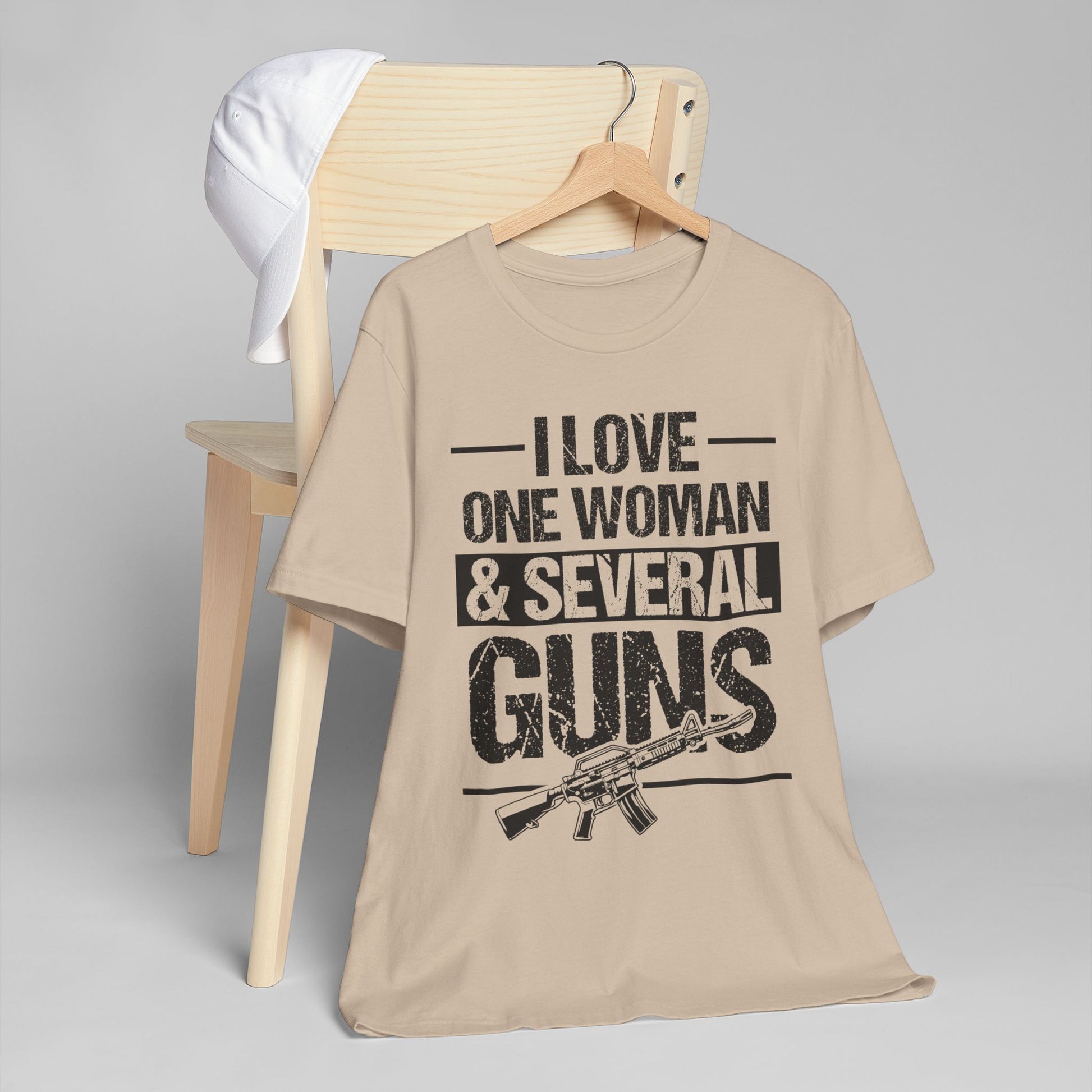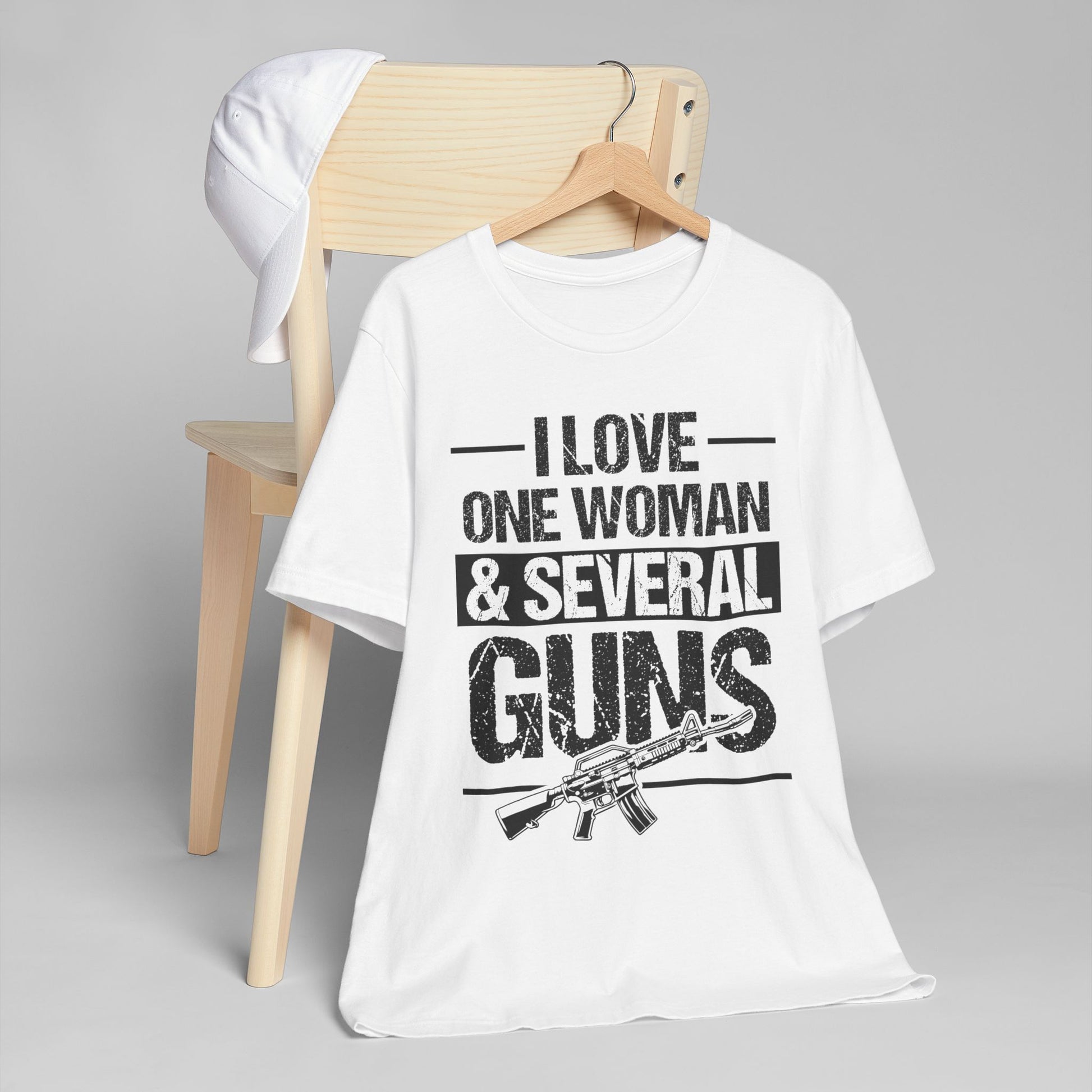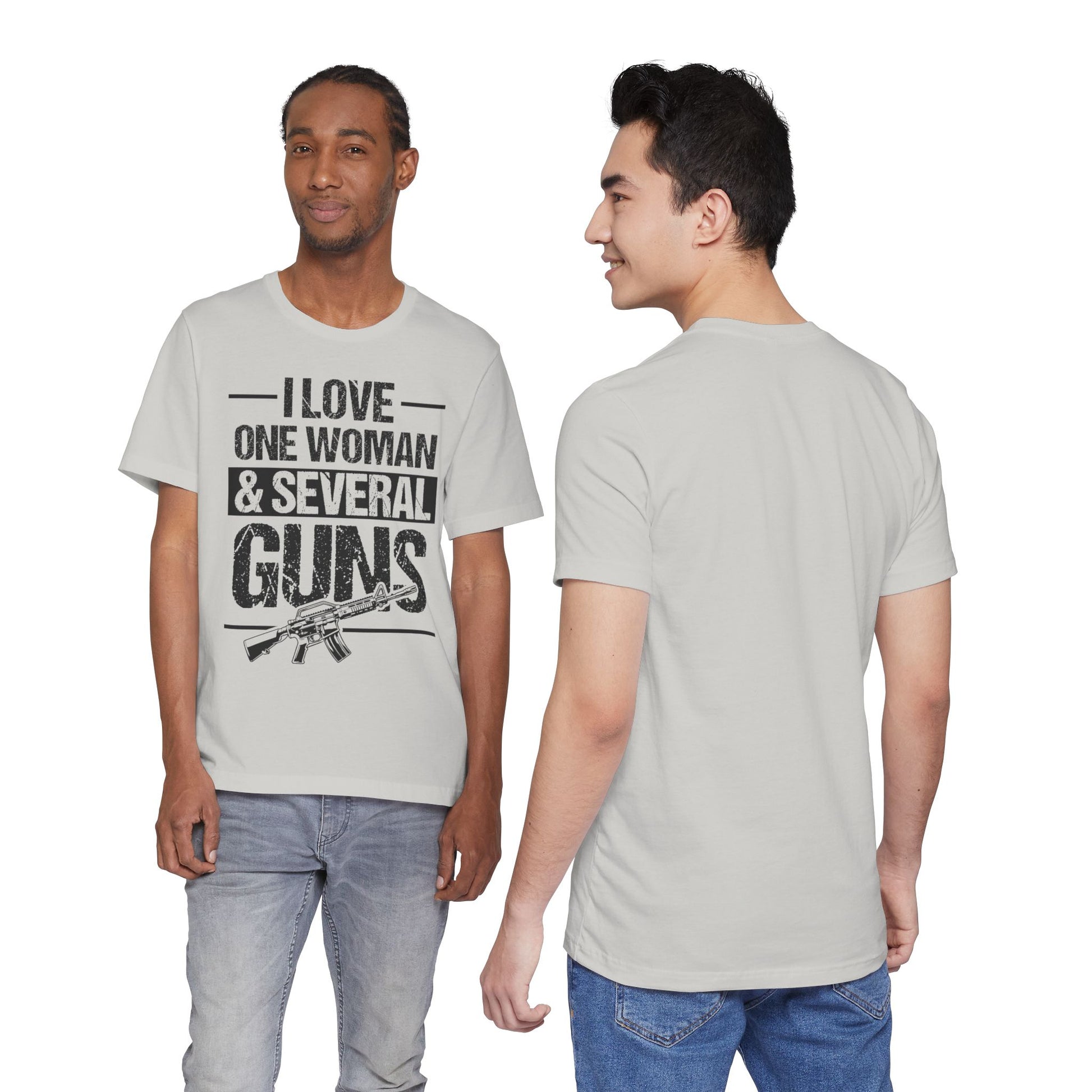 A crisp, lightweight tee that speaks plainly to those who love their family and their firearms. Soft Airlume combed cotton feels cool against the skin while the bold, distressed typography and illustrated rifle deliver a rugged, unapologetic statement. Wear it to the range, a weekend BBQ, or when you want to keep things casual but expressive — it layers easily under a flannel or over a thermal on cooler days. The crew neck and retail fit keep the silhouette clean; the tear-away label and reinforced shoulder tape mean comfort lasts wear after wear.