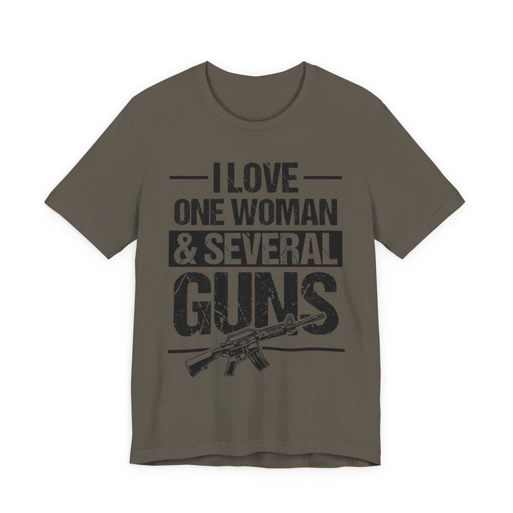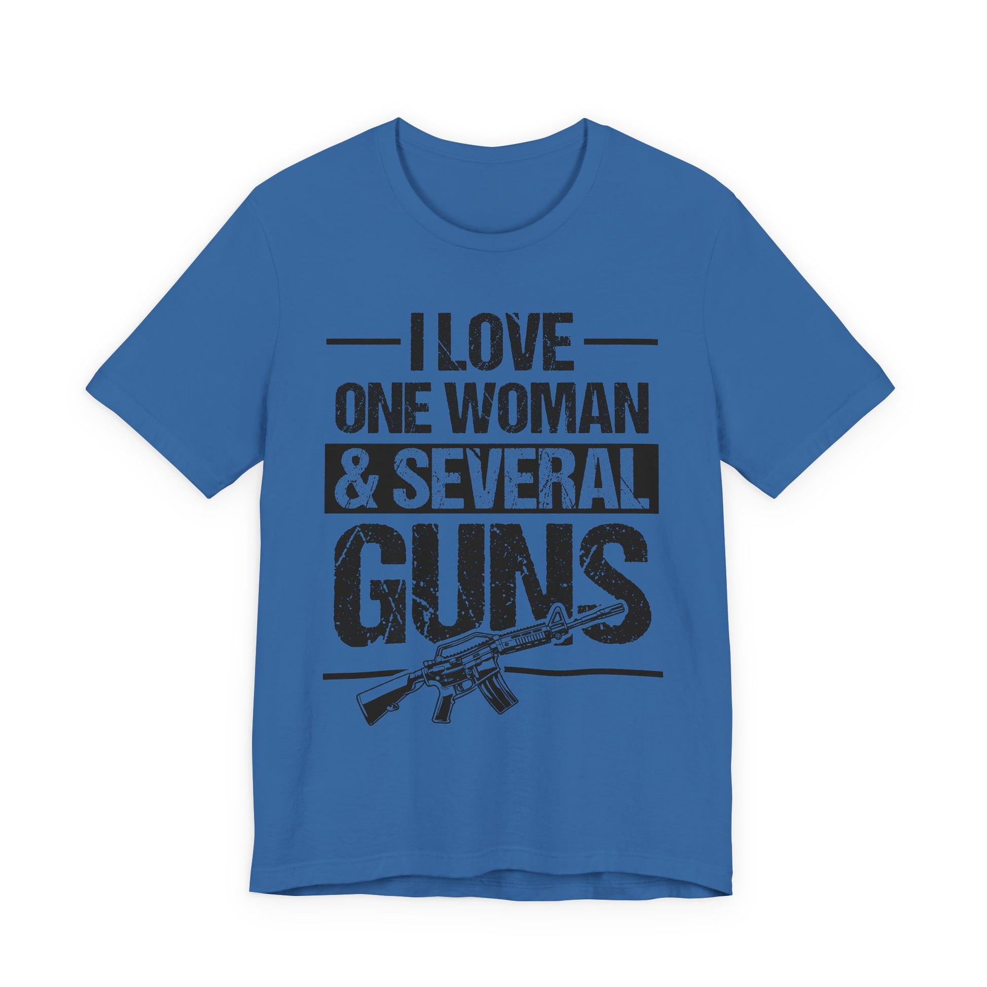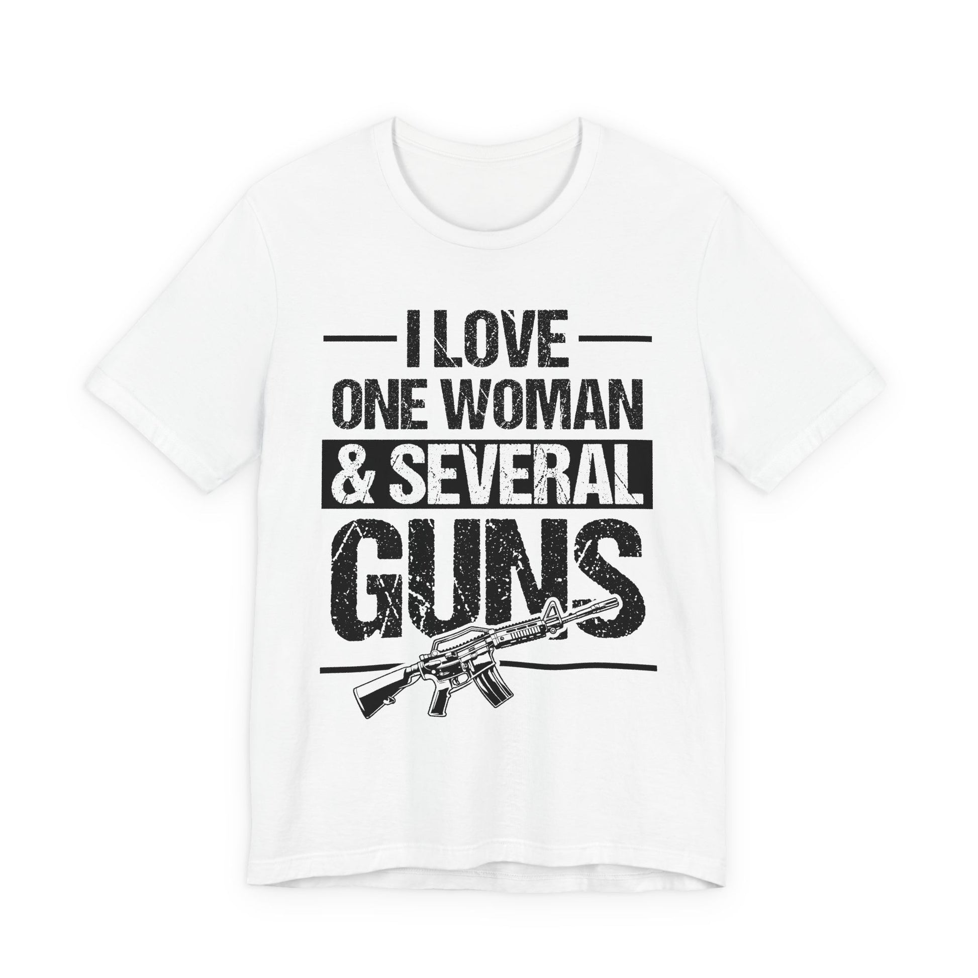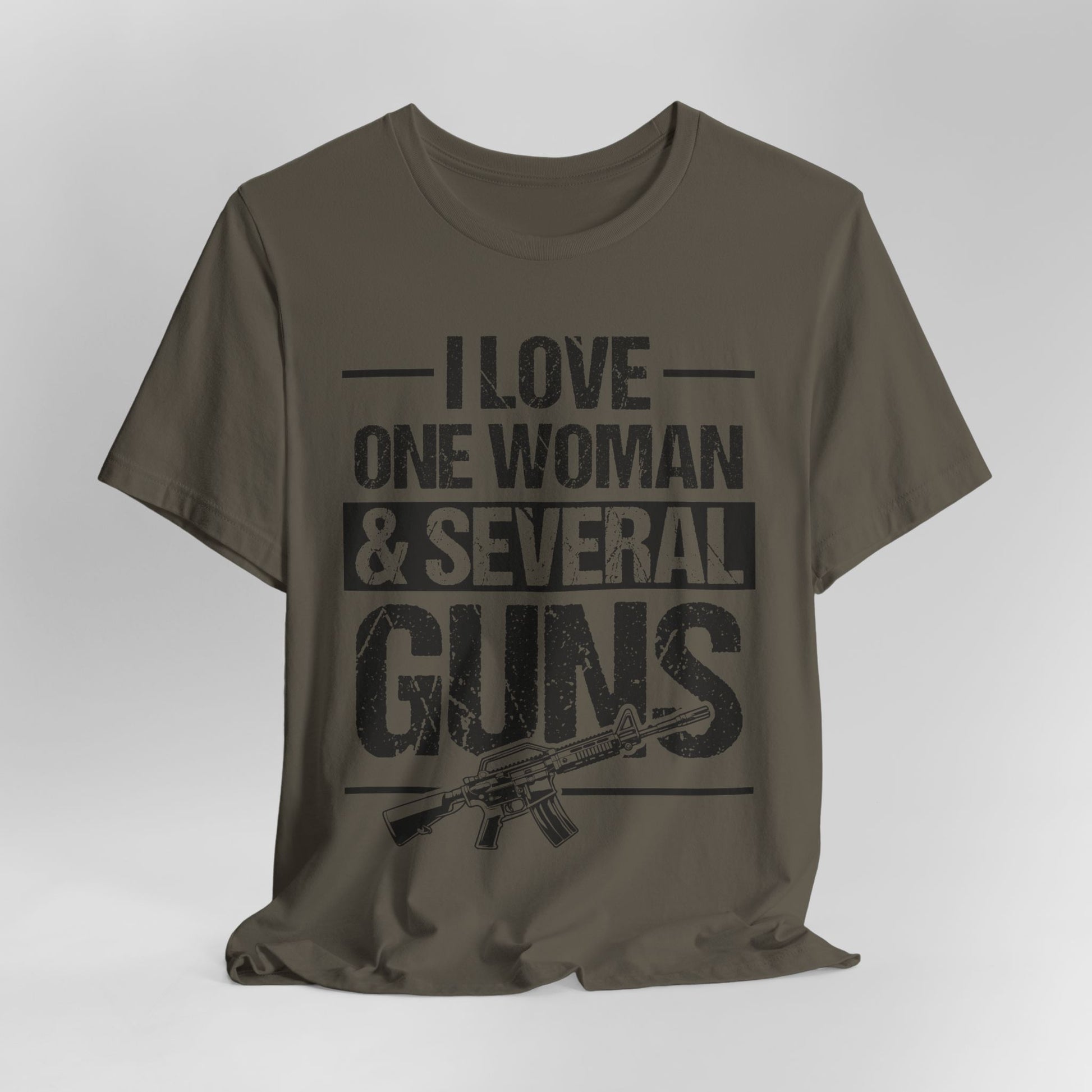 A crisp, lightweight tee that speaks plainly to those who love their family and their firearms. Soft Airlume combed cotton feels cool against the skin while the bold, distressed typography and illustrated rifle deliver a rugged, unapologetic statement. Wear it to the range, a weekend BBQ, or when you want to keep things casual but expressive — it layers easily under a flannel or over a thermal on cooler days. The crew neck and retail fit keep the silhouette clean; the tear-away label and reinforced shoulder tape mean comfort lasts wear after wear.